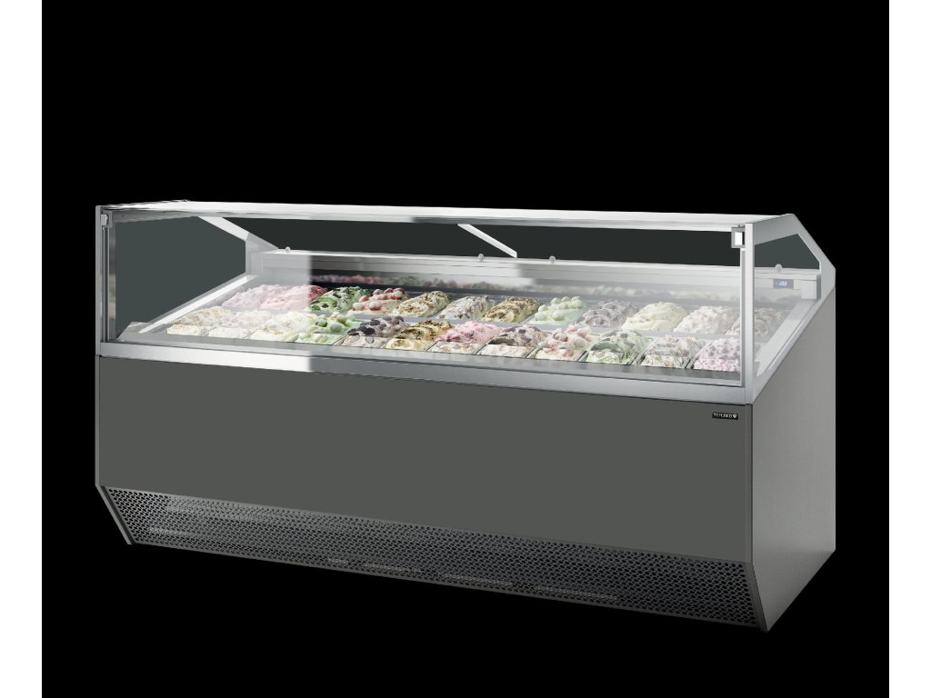 Prémiový distributor zmrzliny Super Capri je navržen tak, aby působil maximálním vizuálním dojmem. Distributor má čisté moderní linie a vnitřní LED osvětlení, aby co nejlépe prezentoval vaši zmrzlinu. Distributor je nakloněn směrem k zákazníkovi (pod úhlem 11°), aby bylo na výrobky lépe vidět. Zařízení má také jedinečný systém chlazení s dvojitým prouděním vzduchu, který umožňuje oddělené proudění chladného vzduchu nad každou řadou vaniček na zmrzlinu, což umožňuje účinnější chlazení a zároveň snižuje teplotní rozdíly. Přední, horní a boční skla jsou vyhřívaná, aby se snížila možnost vzniku kondenzace. Přední sklo je výklopné pro snazší údržbu. Standardní barevné varianty jsou RAL9003 (bílá) RAL9005 (černá) RAL9022 Šedá)Doplňkové parametry