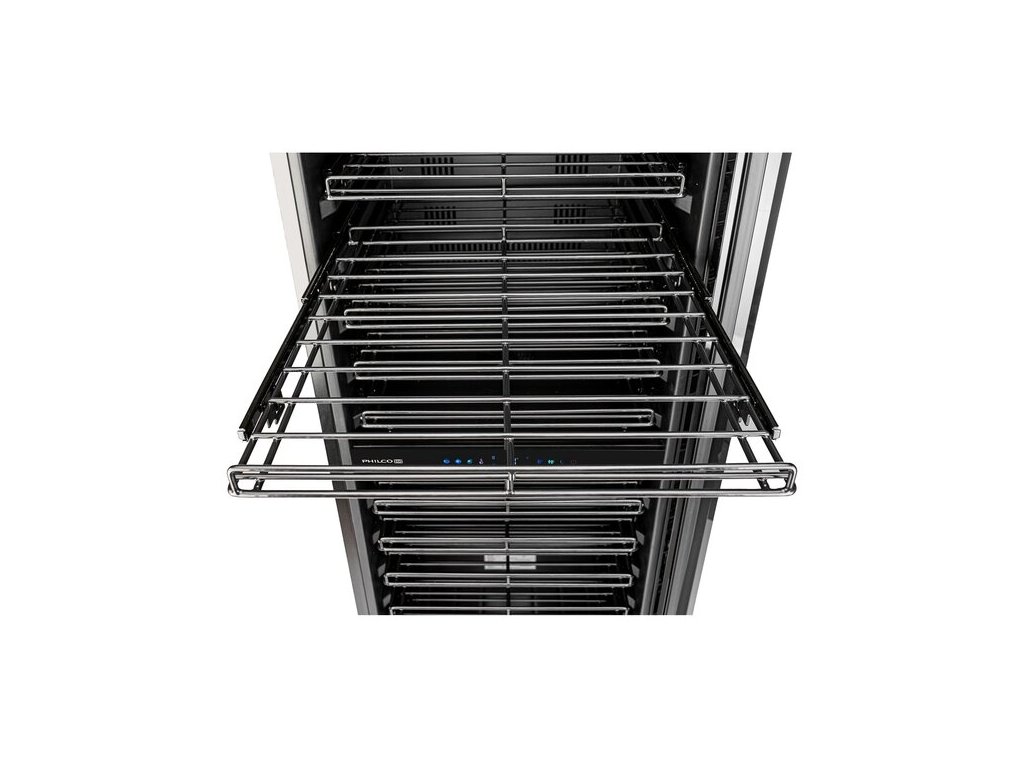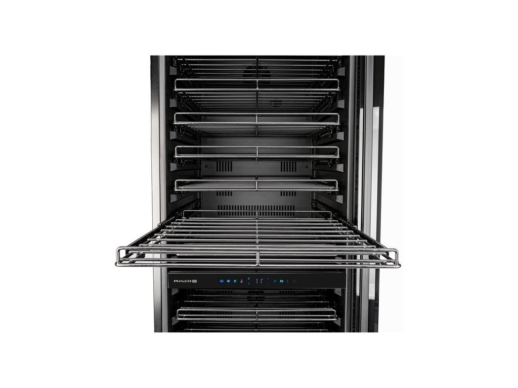 Dvouzónová kompresorová vinotéka Philco PW 131 GDC je skvělou volbou pro milovníky vína, kteří chtějí mít po ruce bohatou sbírku. Vinotéka pojme až 131 lahví, nabídne také dvě nezávislé zóny chlazení a police LabelView, se kterými máte dokonalý přehled.