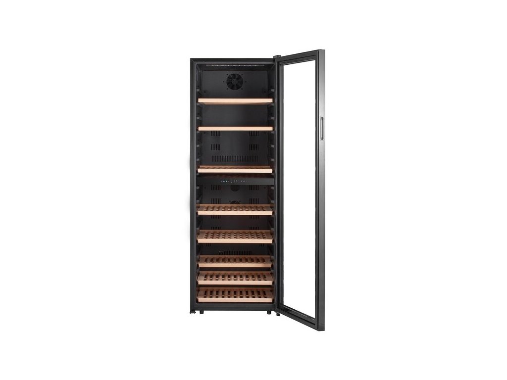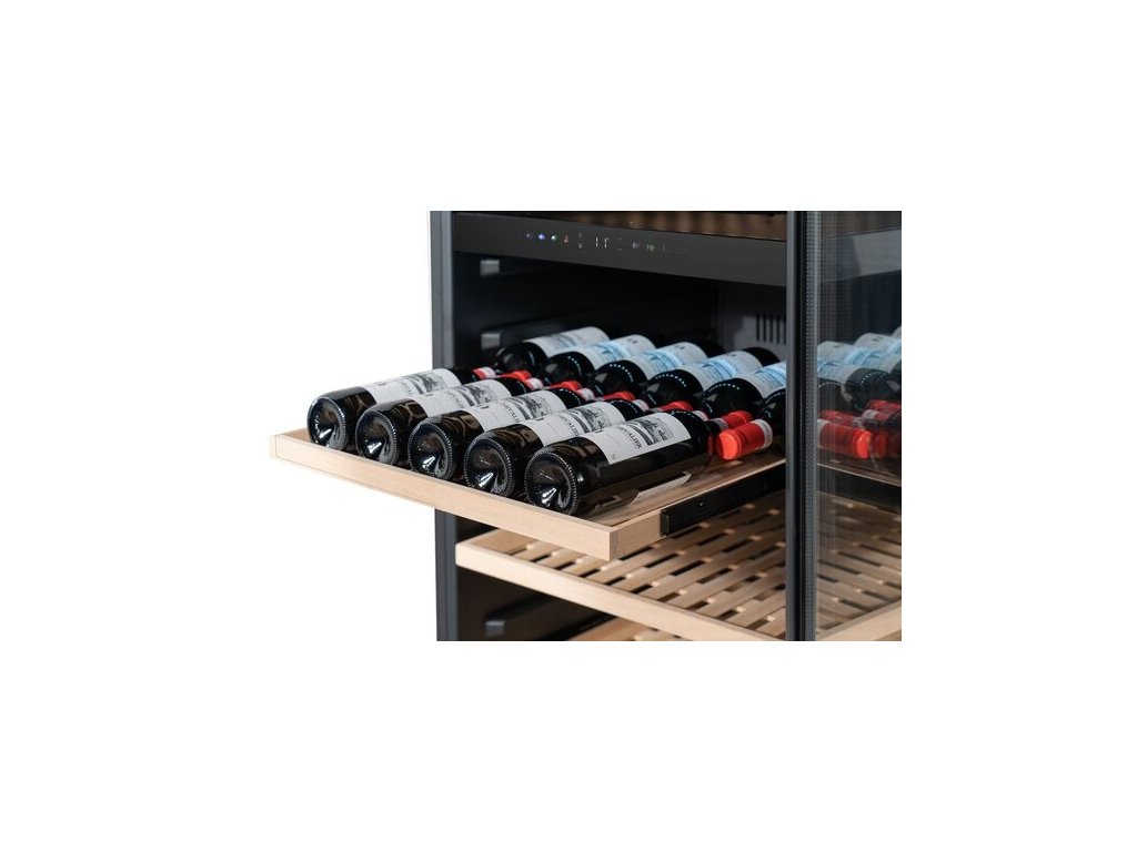 Dřevěné police, kompresorové chlazení s tichým provozem bez vibrací, uhlíkový filtr, beznámrazový systém WinterCare, UV ochrana i aktivní ventilátor zajišťují perfektní prostředí pro každou lahev. Váš osobní vinný sklep vás nadchne nejen kapacitou, ale i elegantním vzhledem.