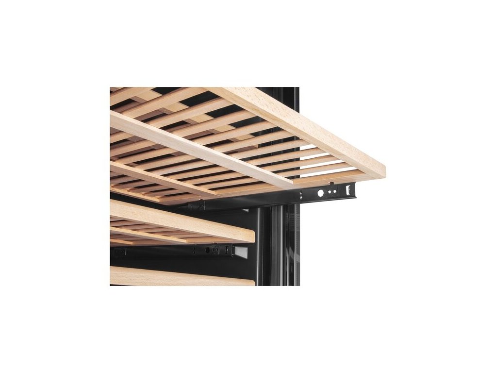 Má moderní vzhled s LED osvětlením, bezrámečkový design, tvrzené trojité sklo s UV ochranou, 6 polic z bukového dřeva na teleskopických výsuvech a skvěle doplní vaši kuchyň, obývací pokoj nebo pracovnu.