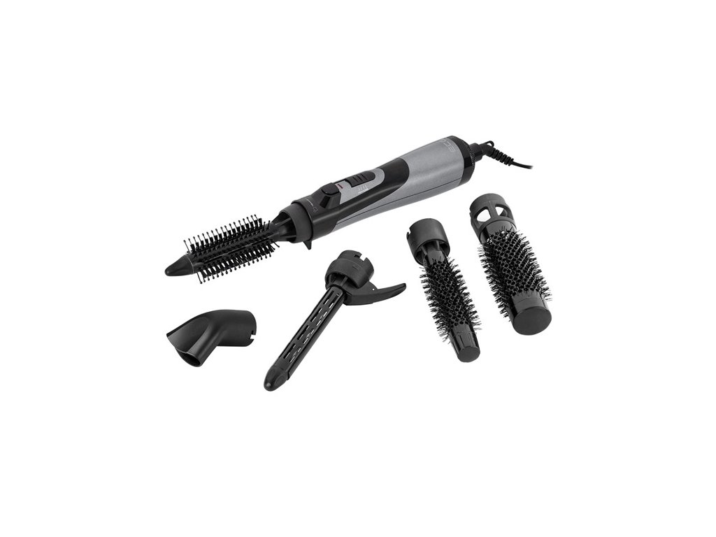 2 stupně výkonu a teploty, 5 odnímatelných nástavců: kulmovací kleště, horkovzdušný kovový kartáč, kulatý štětinový kartáč, tvarovací kartáč, hubice, příkon 1000 W, obal na nástavce a přístrojDoplňkové parametry