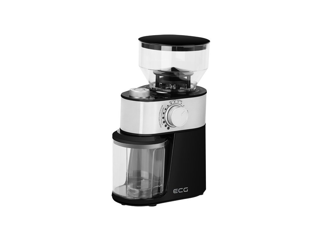 Kávomlýnek s mlecími kameny, regulátor hrubosti mletí - 18 stupňů, možnost nastavení počtu porcí 2 - 12 šálků, nerezový design, až 240 g kávových zrn, 90g kontejner na mletou kávu, příkon 200 WDoplňkové parametry