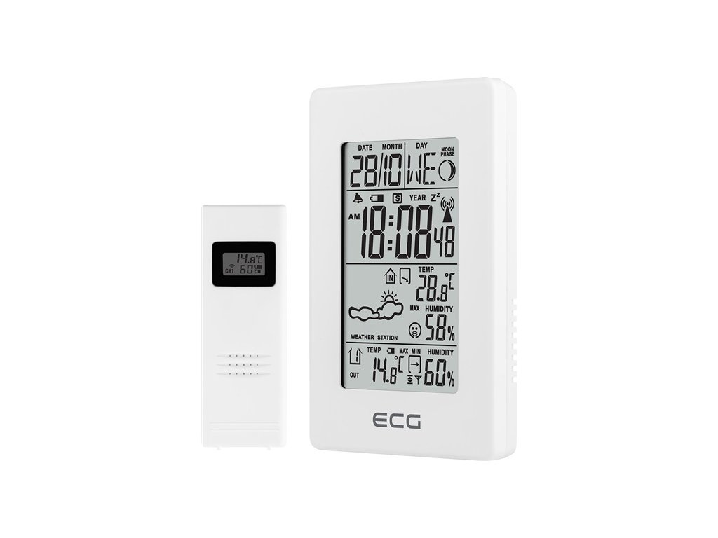 černobílý HTN LCD displej s vylepšenou čitelností, hodiny řízené radiovým signálem, předpověď počasí, vnitřní a venkovní teplota a vlhkost, fáze měsíce, zobrazení data, budík, IPX4 voděodolný bezdrátový 3kanálový senzor s displejem a dosahem až 30 m, napájení stanice 3xAAA, napájení senzoru: 2xAADoplňkové parametry