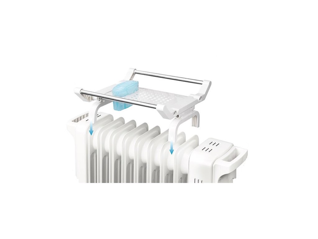 Skládací sušák pro olejový radiátor ECG OR 2090 s nádobkou na zvlhčování vzduchu.Doplňkové parametry