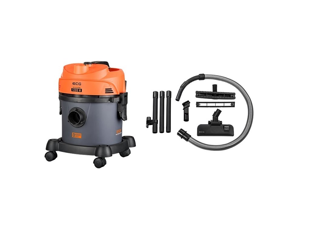 příkon 1200 W, kombinace 3v1 - suché a mokré vysávání,foukání vzduchu, nádoba na prach a vodu o objemu 12 l, akční rádius 8 m (kabel 5m); 3x33 plastové trubice, prachový fltr, podlahový kartáč, hlučnost <81 dB, BEZSÁČKOVÝ!!!Doplňkové parametry