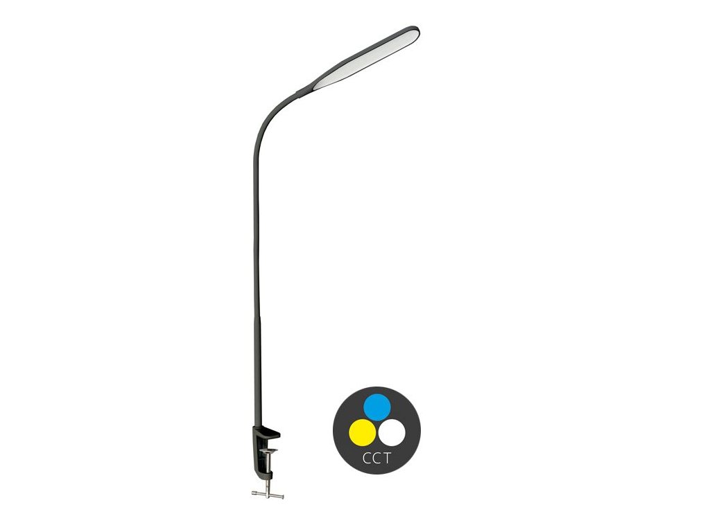 (BAL:1/10ks) Jednoduchá kancelářská lampa určená k upevnění na hranu desky pracovního stolu. Využívá vysoce úspornou SMD LED technologii s dlouhou životností. Rameno lampy je ohebné a lze tak docílit pohodlného nastavení směru světla. Pomocí ovládacího prvku na přivodním kabelu je možné nastavit jas i požadovanou teplotu chromatičnosti v rozmezí 3000-6000K.Rozměry 10 x 34cmTyp zdroje LED SMDNapájení: 230VMax. příkon: 10WBarva produktu: černáRegulace intenzityMateriál: kov, plastBarva světla: volitelná - 3000-6000kStupeň krytí: IP20Třída ochrany: IIIIndex podání barev: 80 RaSvětelný tok: 500lmTyp zdroje : LED SMDBaleno v krabici.Doplňkové parametry