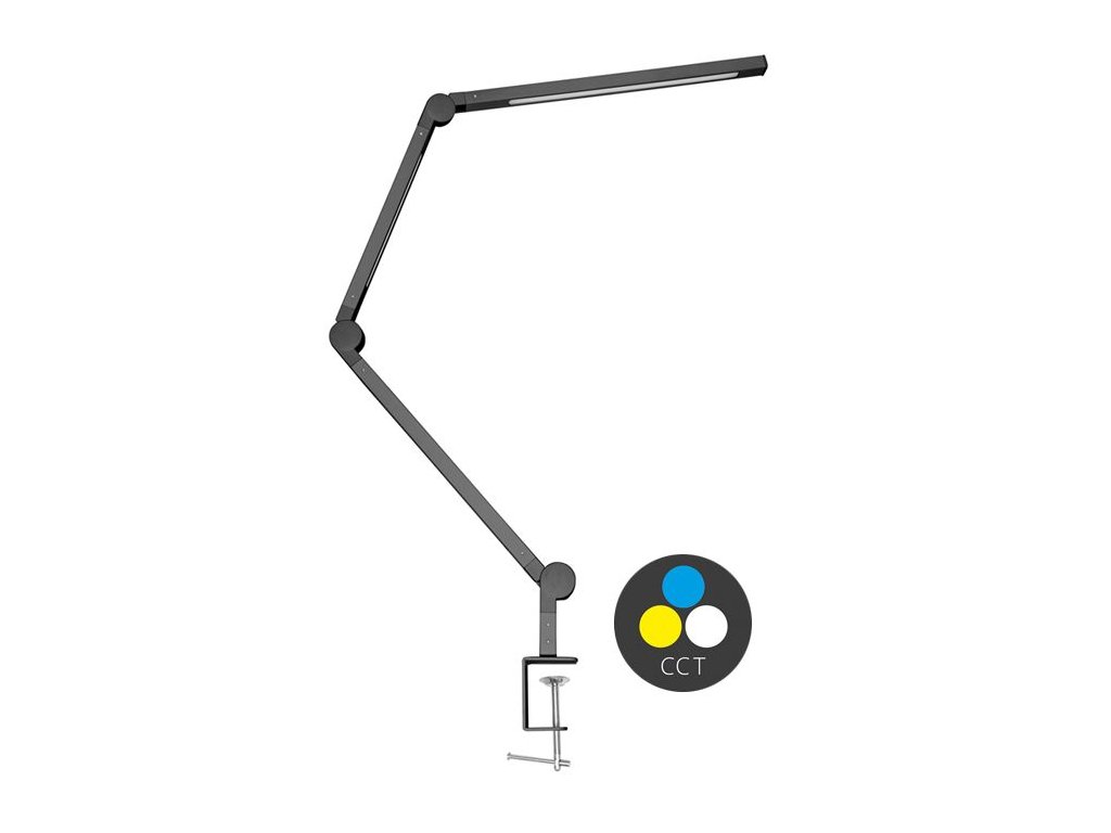 (BAL:1/10ks) Minimalistická kancelářská lampa SPACE je určená k upevnění na hranu desky pracovního stolu. Využívá vysoce úspornou SMD LED technologii s dlouhou životností. Tělo lampy je otočné ve 3 kloubech a lze tak docílit pohodlného nastavení směru světla.Pomocí ovládacího panelu na zadní části lampičky je možné regulovat jas i požadovanou teplotu chromatičnosti v rozmezí 3000-6000K.Rozměry ramen: 33+30+39cmTyp zdroje LED SMDNapájení: 230VMax. příkon: 19WBarva produktu: černáRegulace intenzityMateriál: kov, plastBarva světla: volitelná - 3000-6000kStupeň krytí: IP20Třída ochrany: IIIIndex podání barev: 80 RaSvětelný tok: 700lmTyp zdroje : LED SMDBaleno v krabici.Doplňkové parametry