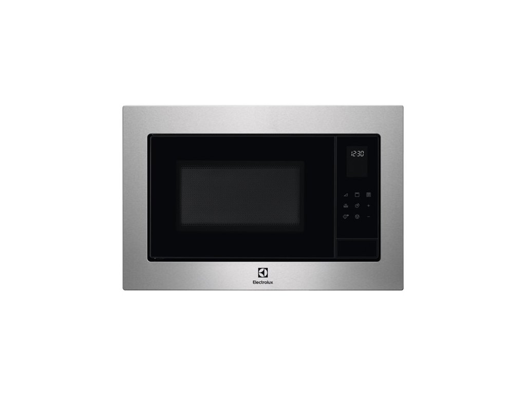 Vestavná mikrovlnná trouba; Electrolux 600 FLEX Grill EMS4253TEX; Výška (cm): 39; Funkce: Mikrovlny/ gril; Čistý objem (l): 25,37; Ovládání: Elektronické; Počet úrovní výkonu: 5; Mikrovlnný výkon (W): 900; Výkon grilu (W): 1000; Barva: Černá/Nerez; Rozměr VxŠxH (mm): 459x594x417Doplňkové parametry