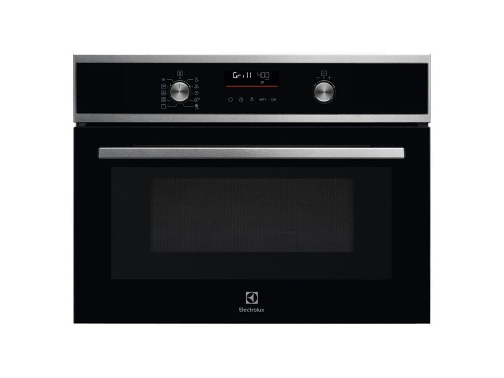 Trouba vestavná kompaktní; Electrolux 600 FLEX Quick&Grill EVM6E46X; Šířka (cm): 60; En,třída: Není; Technologie: Quick&Grill; Samočištění: Žádné; Vnitřní objem (l): 46; Ovládaní: Zasunovací ovladače, barevný LCD displej; Teleskopické výsuvy: Ne; Teplotní sonda: Ne; SoftClosing: Ne; Barva: Nerez s povrchovou úpravou proti otiskům prstů; Počet skel: 4; Rozměr VxŠxH (mm): 455x595x567; 5 let záruka na celý model: NeDoplňkové parametry