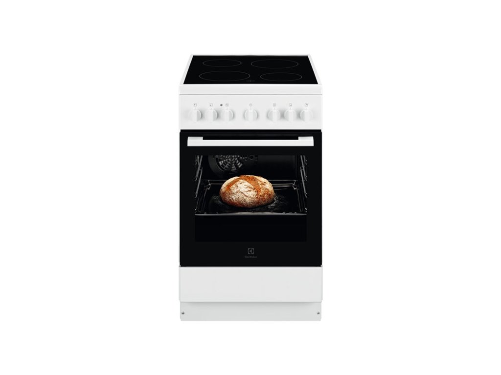 Sporák; Electrolux LKR520066W; Typ: Sklokeramika; Šířka (cm): 50; Vnitřní objem čistý (l): 54; Ovládaní: Otočné ovladače; Typ trouby: Multifunkční; Barva: Bílá; Rozměry VxŠxH (mm): 858x500x600Doplňkové parametry