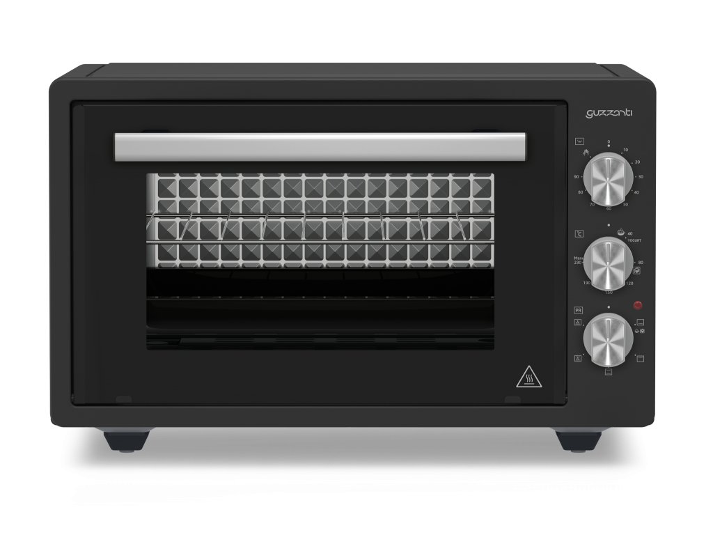 Elektrická pečící trouba Guzzanti GZ 3621A Velký vnitřní prostor o objemu 42 litrů Turbo funkce pro rovnoměrnou cirkulaci horkého vzduchu Funkce parního čištění – nejsnadnější způsob čištění s použitím pouze dvou šálků vody Program pro snadnou přípravu domácího jogurtu V souladu s předpisem A13 upravujícím účinnost a povrchovou teplotu Horní (650W) a spodní (650W) topné těleso Výškově nastavitelný pečící plech 90 minutový časový spínač Vnitřní osvětlení Snadno udržovatelný, smaltovaný, vnitřní plášť trouby Plynulé nastavení teploty v rozsahu 40°C - 230°C Smaltovaný pečící plech a Cr-Ni rošt Dvojitá skleněná dvířka se silikonovým těsněním Matný černý povrch trouby s nerezovými ovladači 220 - 240 V, 50 - 60 Hz, 1300W Vnější rozměry (V x Š x H) 330 x 520 x 450 mm Vnitřní rozměry (V x Š x H) 234,4x395,5x388,4 mm Vyrobeno v TureckuDoplňkové parametry