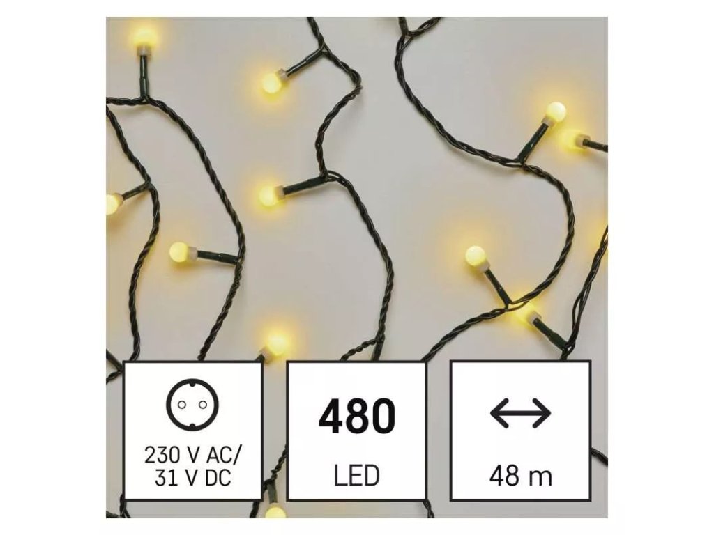 EMOS D5AW05 480LED 48m WW IP44 řetěz kulička teplá, časovač