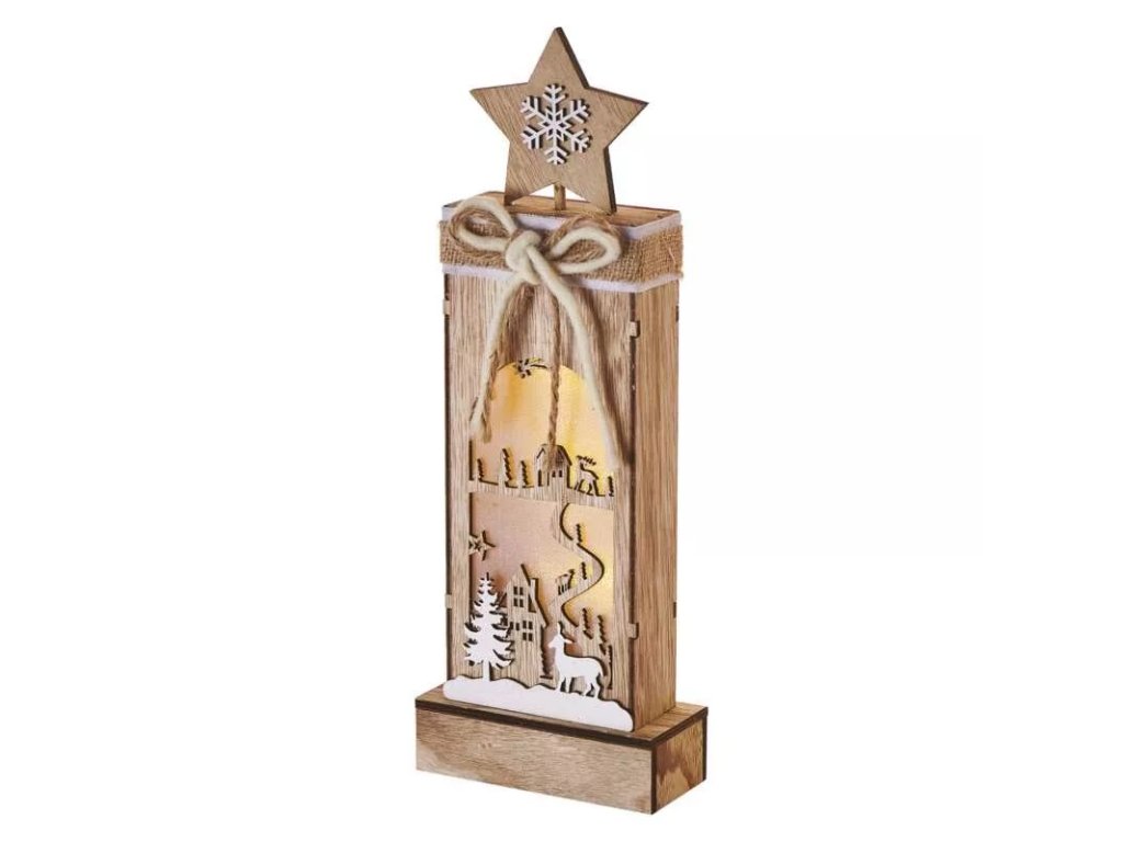 EMOS DCWW13 3 LED dřevěná dekorace - zimní krajina, 34 cm, 2x AA, teplá bílá, časovač