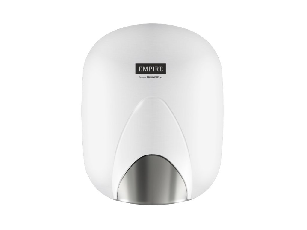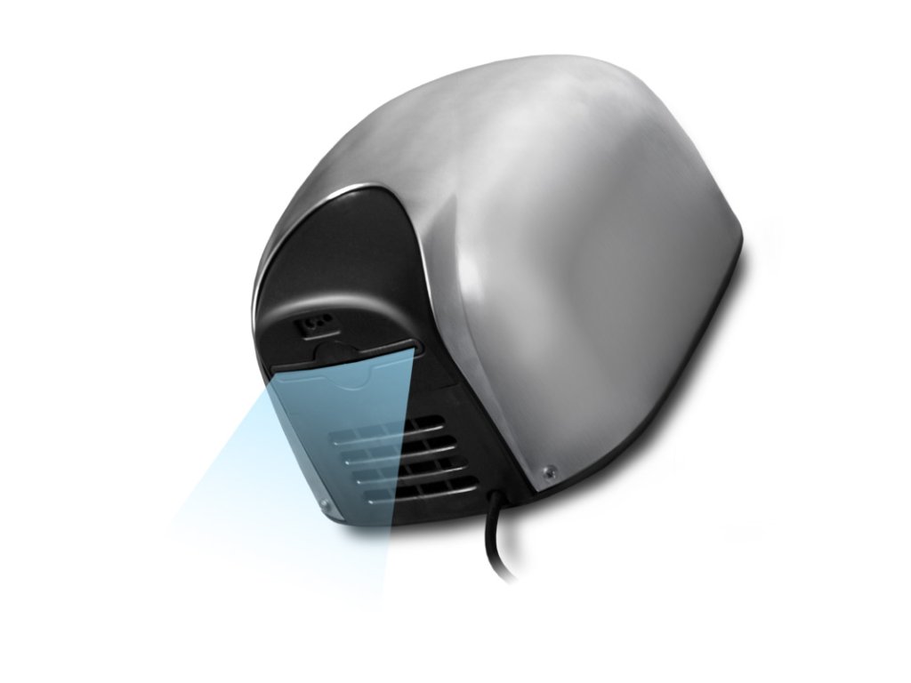 Revoluční bezkontaktní osoušeč rukou, spojující v sobě kompaktní velikost běžného osoušeče na zeď s výkonem tryskových osoušečů. Osouší silným proudem vzduchu ve tvaru clony. Úsporný provoz bez topného tělesa, výstupní vzduch se ohřeje na 50°C průchodem přes vysokoobrátkový motor. Osoušeč: 230 V / 50 Hz, příkon 1.100 W / 4,8 A, IP23, CLASS II, CE - Motor: příkon 1.100 W, 32.000 ot./min, - Průtok vzduchu: 345 m3/h - Rychlost proudění vzduchu: 325 km/h - Úroveň hluku: 75 dB(A) v tolerančním pásmu +3 dB - Kryt: Alu odlitek s bílým lakem - Antivandal - Hmotnost: 2,5 kg - Rozměry: 221 mm × 285 mm × 157 mm (š × v × h)Doplňkové parametry