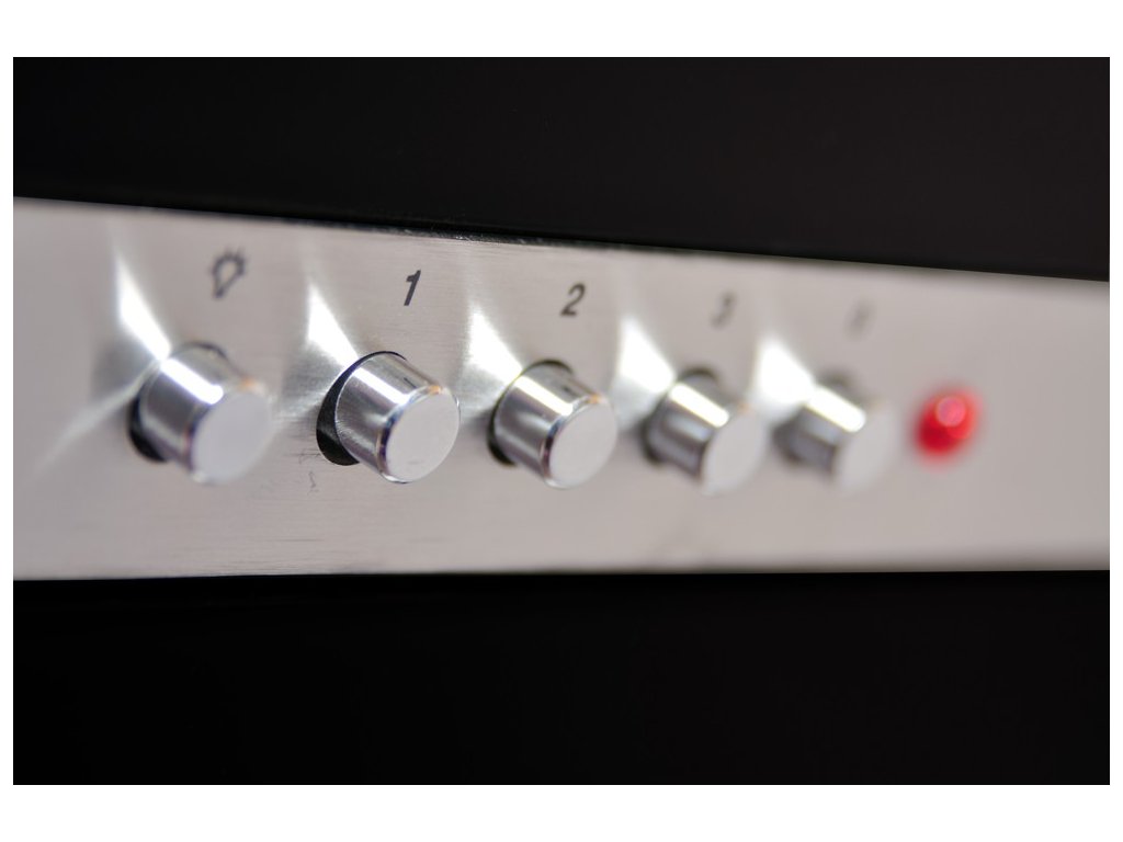 Komínová digestoř ke zdi, šíře 90 cm, černá / černé sklo, max. výkon 405 m³/h (5 Pa), hlučnost Lw 51 – 61 dB(A), 3 rychlosti, odsávací jednotky mají individuálně vyvažovanou turbínu, motory jsou opatřené vratnými tepelnými pojistkami (při přetížení motoru vypne, po jeho vychladnutí opět sepne), mechanické tlačítkové ovládání, kovové sendvičové tukové filtry, které lze mýt v myčce, možnost práce v odtahovém i recirkulačním režimu, výstupní průměr 150 mm, Výbava: úsporné LED osvětlení 2 × 2 W, zdarma redukce na 120 mm a zpětná klapka, Benefity: šikmá digestoř zvětšuje manipulační prostor nad varnou deskou a výrazně omezuje riziko bouchnutí se do hlavy o digestoř, šikmá digestoř může být instalovaná o 10-15 cm níž, než digestoře s rovnou spodní částí (snazší dostupnost ovládacích prvku i pro osoby menšího vzrůstu)Doplňkové parametry