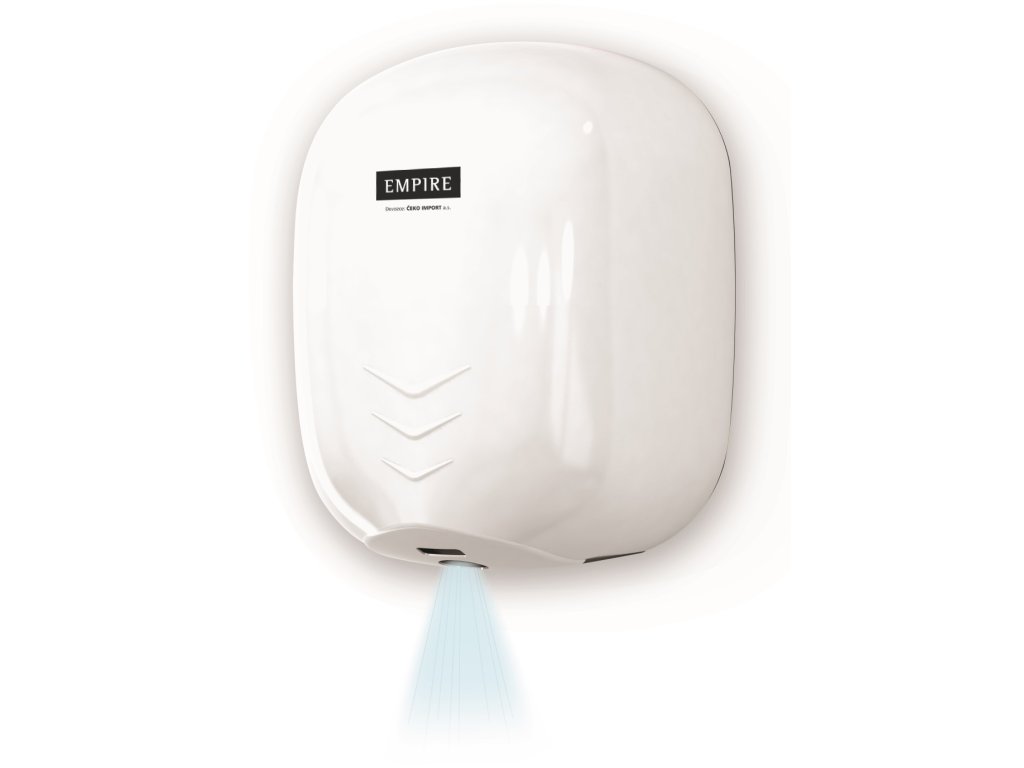 - Revoluční osoušeč rukou, spojující v sobě kompaktní velikost běžného osoušeče na zeď s výkonem tryskových osoušečů. Osouší silným proudem vzduchu ve tvaru paprsku. Vzduch prochází přes vestavěný EPA filtr a UV lampu a tím se dezinfikuje. - Bezkontaktní a sterilní osušení rukou za 10-15 s - Úspora až 80 % nákladů v porovnání s ručníky - Jednoduchá náhrada za tradiční osoušeč bez nutnosti přesekávat přívodní kabel Osoušeč: 230 V / 50 Hz, příkon 1.110 W, IP23, CLASS II, CE - Motor: příkon 550 W, 26.000 ot./min, - Průtok vzduchu: 187 m3/h - Rychlost proudění vzduchu: 300 km/h - Úroveň hluku: 75 dB(A) v tolerančním pásmu +3 dB - Topné těleso: 550 W, s volbou Zapnuto / Vypnuto - UV lampa a vyměnitelný EPA filtr pro dezinfekci procházejícího vzduchu - Kryt: kovový bílý, antivandal - Automatické spouštění (infrasnímač) - Hmotnost: 4,5 kg - Rozměry: 221 mm × 285 mm × 157 mm (š × v × h)Doplňkové parametry