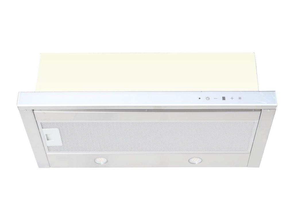 Výsuvná digestoř s listou z bílého skla a s dotykovým ovládáním: Maximální výkon 200 m³/h (15 Pa), 5 rychlostí - hlučnost Lw při max. výkonu je 60 dB(A) - odsávací jednotky mají individuálně vyvažovanou turbínu - motory jsou opatřené vratnými tepelnými pojistkami (při přetížení motoru vypne, po jeho vychladnutí opět sepne) - kovové sendvičové tukové filtry, které lze mýt v myčce - výstupní průměr 120 mm – zdarma zpětná klapka - možnost práce v odtahovém i v recirkulačním režimu– funkce dovětrání (15 min. doběhový časovač) Recirkulační režim u vestavných digestoří: Digestoř se osadí uhlíkovým pachovým filtrem. Přefiltrovaný vzduch se z digestoře odvádí obdobně jako u odtahového režimu trubkou, která prochází celou skříňkou. Tato trubka však neústí kolenem do zdi, ale nad skříňku, kde ji doporučujeme zakončit mřížkou. Pro výrobu skříňky je směrodatný rozměrový nákres a údaje v něm uvedené. Fotografie digestoří jsou ilustrační.Doplňkové parametry