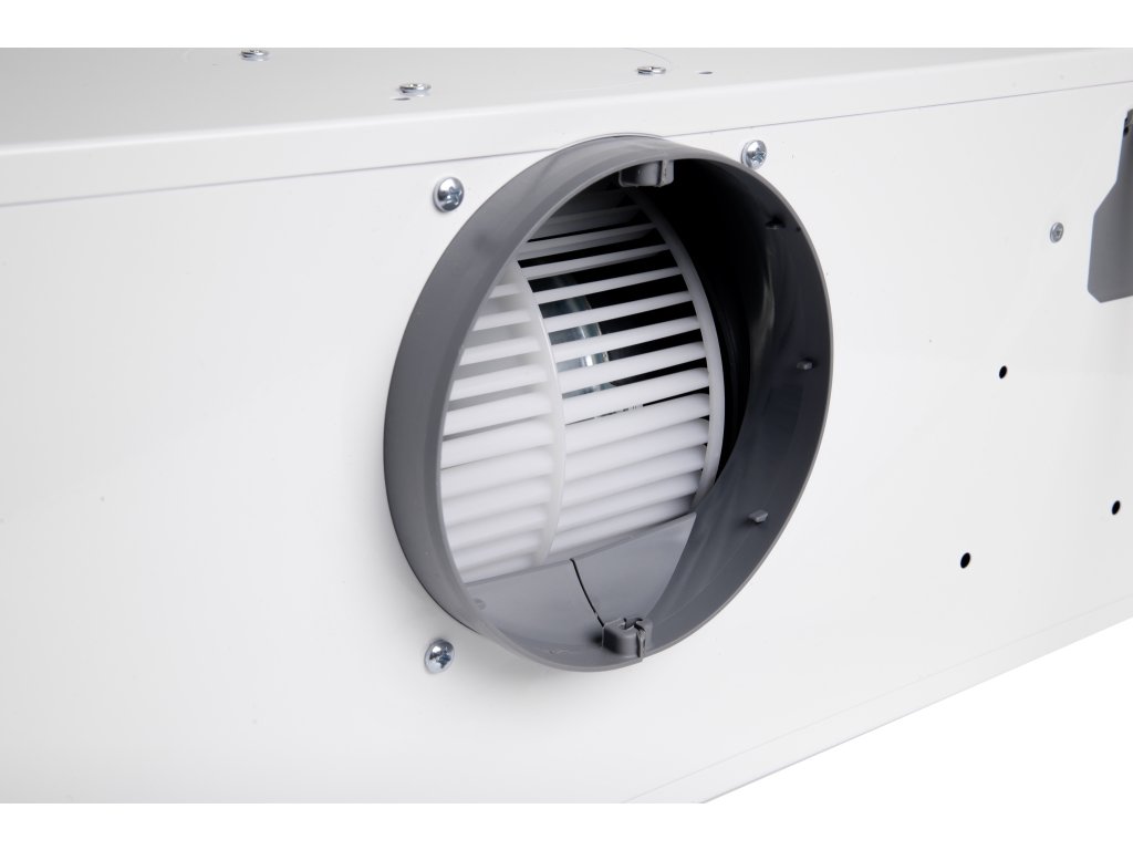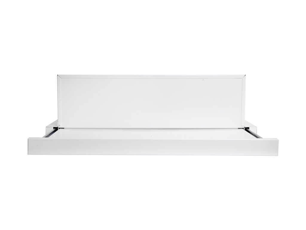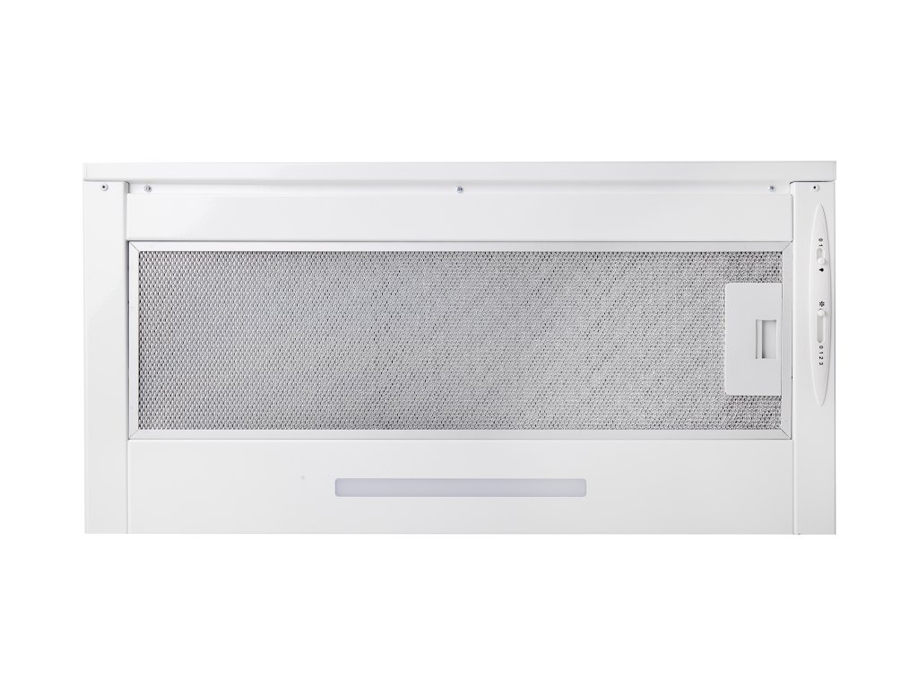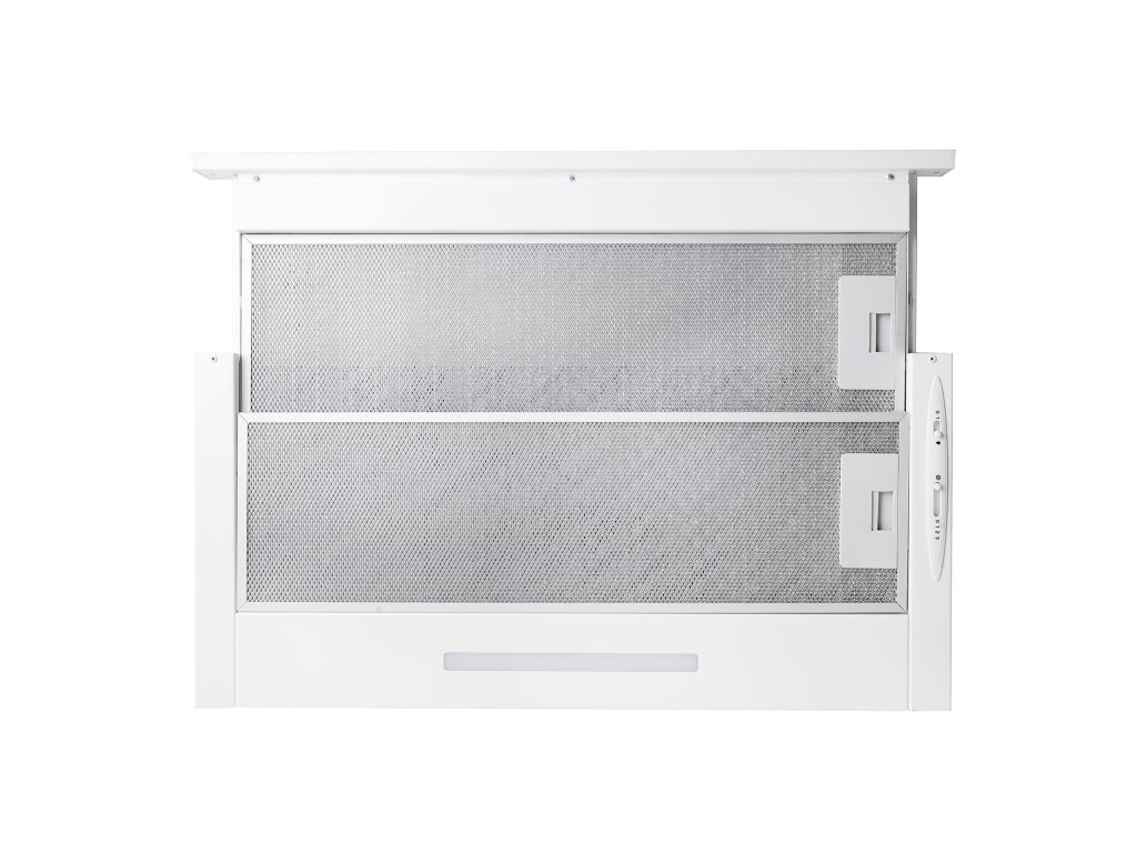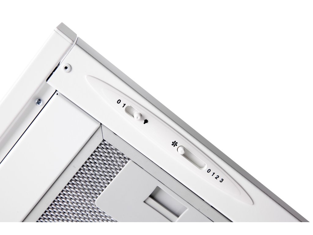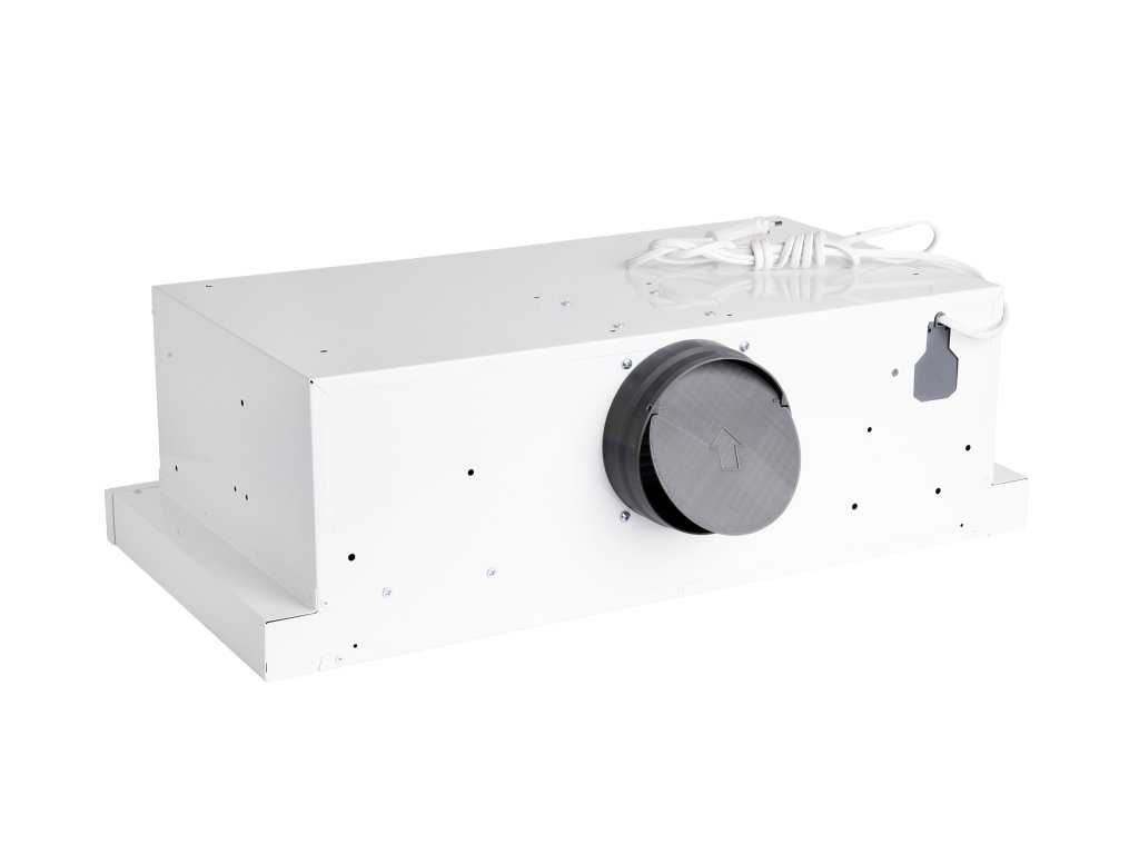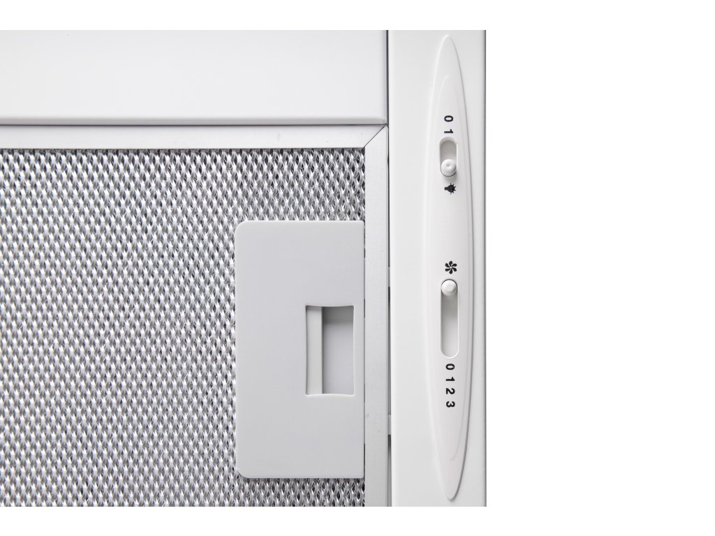 Vestavná digestoř výsuvná, jediná na trhu s odtahem dozadu nebo nahoru (oba 120 mm), šíře 60 cm, bílá, max. výkon 338 m³/h (15 Pa), hlučnost Lw 56 – 71 dB(A), 3 rychlosti, odsávací jednotky mají individuálně vyvažovanou turbínu, motory jsou opatřené vratnými tepelnými pojistkami (při přetížení motoru vypne, po jeho vychladnutí opět sepne), mechanické posuvné ovládání, kovové sendvičové tukové filtry, které lze mýt v myčce, možnost práce v odtahovém i recirkulačním režimu, Výbava: úsporné LED osvětlení 1 × 2,8 W (LED pásek), zdarma zpětná klapka Recirkulační režim u vestavných digestoří: Digestoř se osadí uhlíkovým pachovým filtrem. Přefiltrovaný vzduch se z digestoře odvádí obdobně jako u odtahového režimu trubkou, která prochází celou skříňkou. Tato trubka však neústí kolenem do zdi, ale nad skříňku, kde ji doporučujeme zakončit mřížkou. Pro výrobu skříňky je směrodatný rozměrový nákres a údaje v něm uvedené. Fotografie digestoří jsou ilustrační.Doplňkové parametry