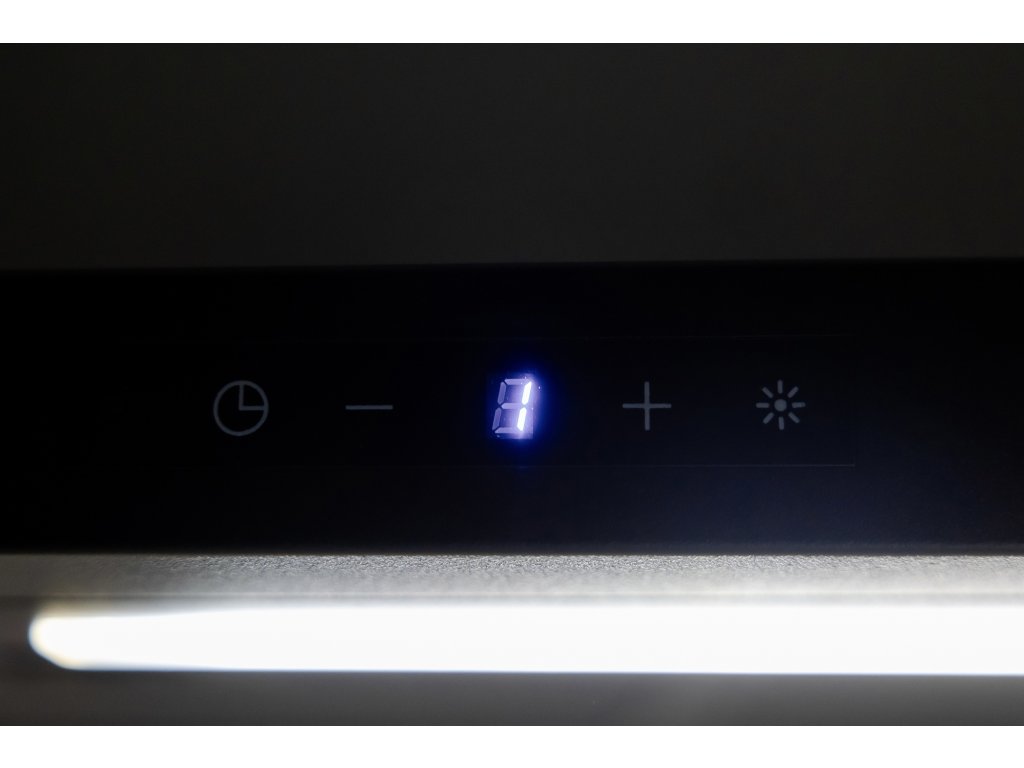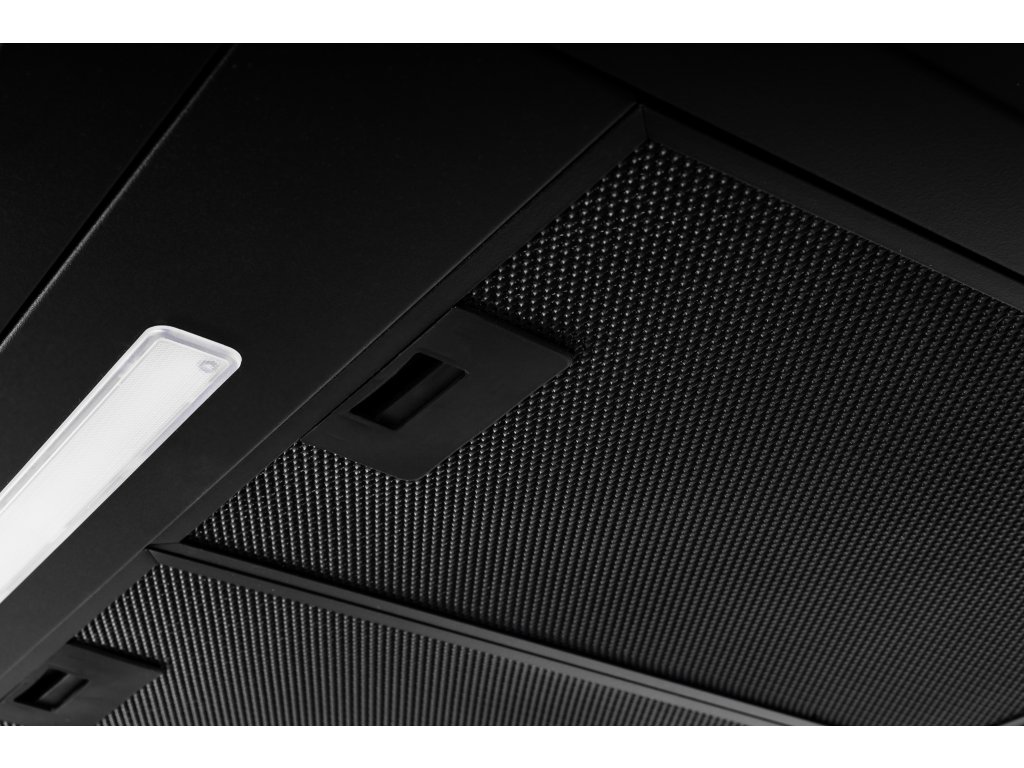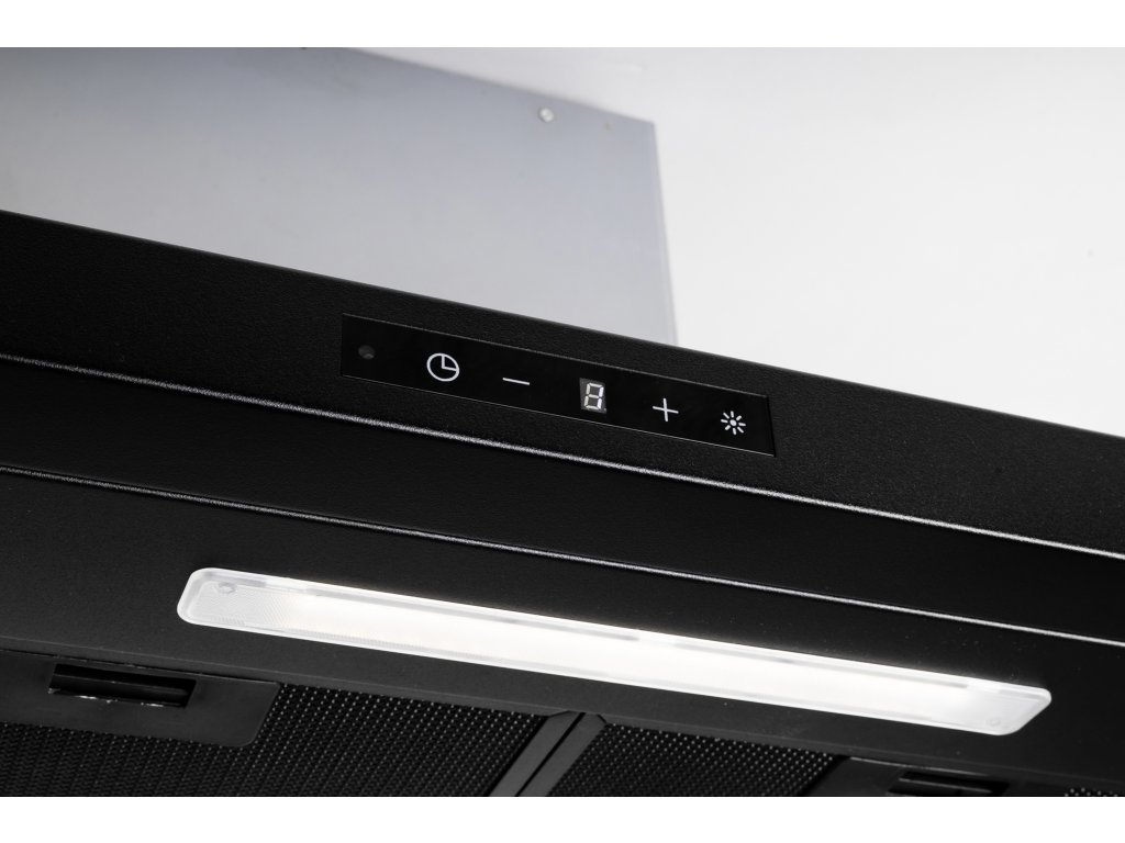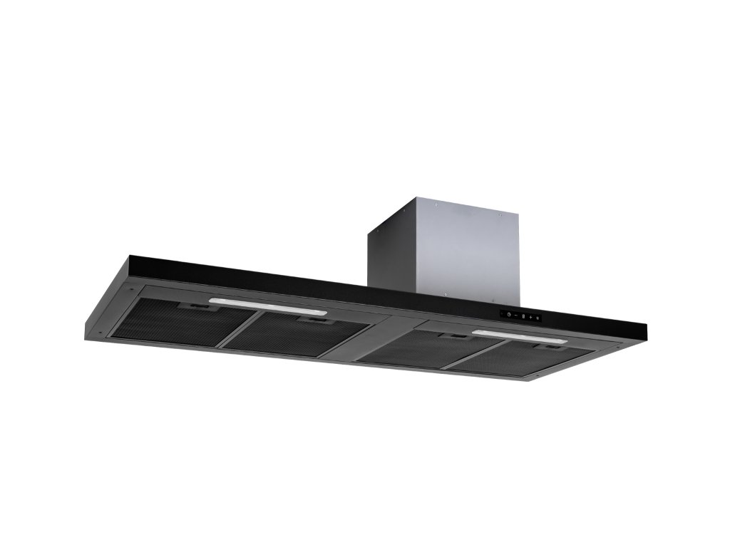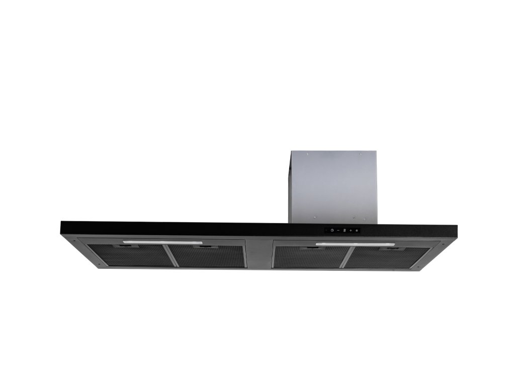 Komínová digestoř ke zdi s impozantním designem, šíře 120 cm, černá, skleněná odkládací police, max. výkon 691 m³/h (5 Pa), hlučnost Lw 53 – 73 dB(A), 5 rychlostí + TURBO, odsávací jednotky mají individuálně vyvažovanou turbínu, motory jsou opatřené vratnými tepelnými pojistkami (při přetížení motoru vypne, po jeho vychladnutí opět sepne), kovové sendvičové tukové filtry, které lze mýt v myčce, výstupní průměr 150 mm, možnost práce v odtahovém i recirkulačním režimu, VIP výbava: úsporné LED osvětlení 2 × LED PÁSEK 2,8 W, elektronické dotykové ovládání s LED displejem a s doběhovým časovačem, zdarma dálkový ovladač i s bateriemi, zdarma redukce na 120 mm a zpětná klapka, Benefity: používání dálkového ovládání usnadňuje údržbu digestoře (méně otisků na digestoři = snazší čištění), ovladač je opatřený magnetem, lze jej přichytit třeba na dveře lednice (může být snadno po ruce, nikam nezapadne)Doplňkové parametry