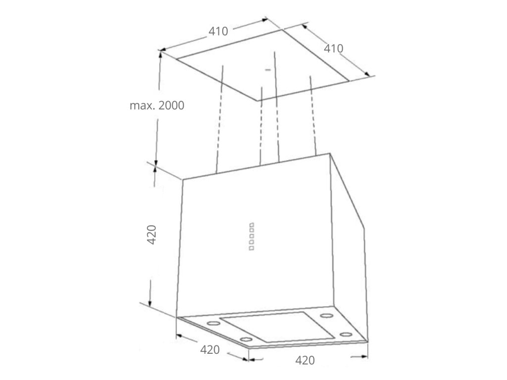 Ostrůvková lustrová digestoř, šíře 40 cm, černá / černé sklo, max. výkon 726 m³/h (5 Pa), hlučnost Lw 51 – 69 dB(A), 3 rychlosti + TURBO, odsávací jednotky mají individuálně vyvažovanou turbínu, motory jsou opatřené vratnými tepelnými pojistkami (při přetížení motoru vypne, po jeho vychladnutí opět sepne), kovové sendvičové tukové filtry, které lze mýt v myčce, digestoř určená pro provoz v recirkulačním režimu, VIP výbava: úsporné LED osvětlení 4 × 2 W, elektronické dotykové ovládání s doběhovým časovačem, zdarma dálkový ovladač i s bateriemi, Benefity: používání dálkového ovládání usnadňuje údržbu digestoře (méně otisků na digestoři = snazší čištění), ovladač je opatřený magnetem, lze jej přichytit třeba na dveře lednice (může být snadno po ruce, nikam nezapadne)