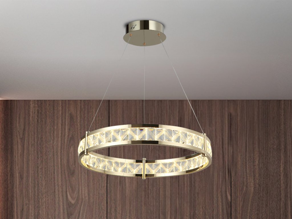 Prémiové materiály – kombinace lesklé kovové konstrukce a broušených křišťálů vytváří luxusní a sofistikovaný vzhled.