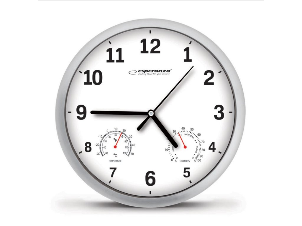 Esperanza EHC016W hodiny nástěnné LYON průměr 25cm teplota vlhkost bílá - bílý ciferník