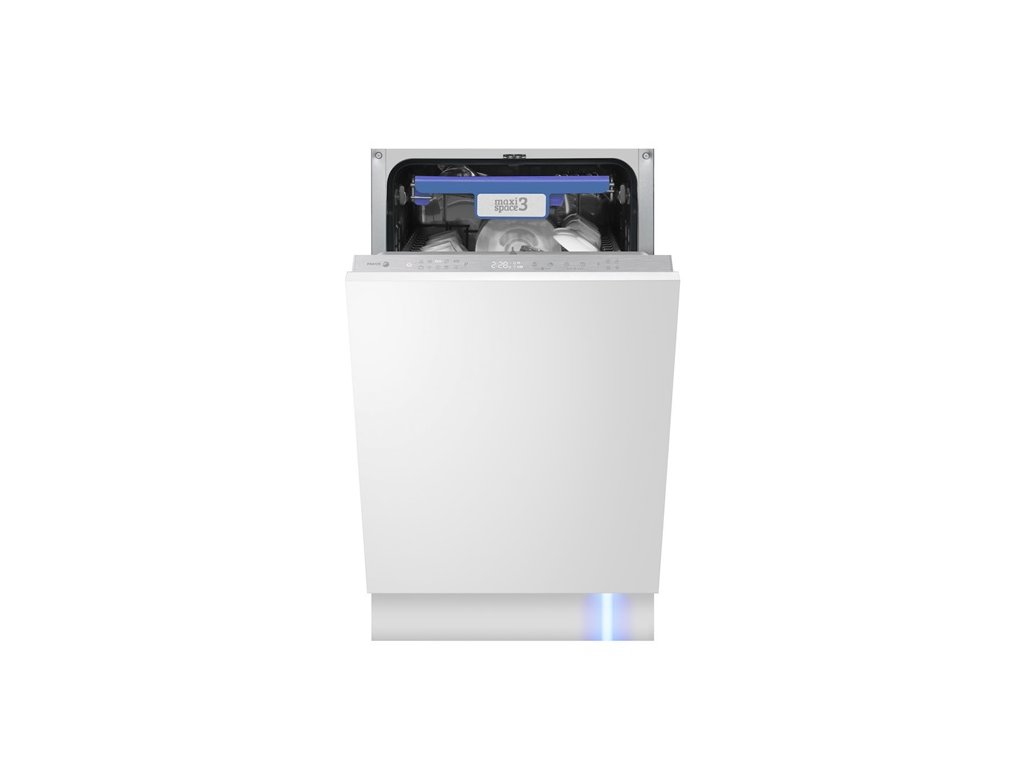 Vestavná myčka nádobí, 45 cm, energetická třída C, 10 programů, 10 sad nádobí, 44 dB, LED displej, integrovaný stříbrný ovládací panel, 3. zásuvka na příbory, zónové mytí, aquastop, aquasensor, BLDC invertorový motor, Blue dot, automatické otevírání dveří, Steam, UV, sliding doorDoplňkové parametry