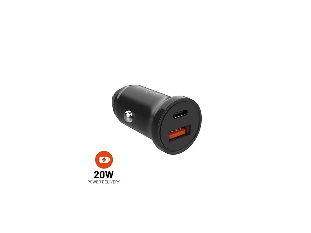 Autonabíječka FIXED s USB-C a USB výstupem a podporou PD, 20W, černá