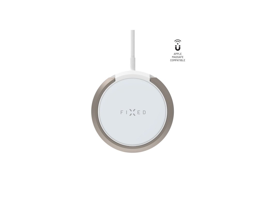 Bezdrátová nabíječka FIXED MagPad s podporou uchycení MagSafe a stojánkem, 15W, bílá
