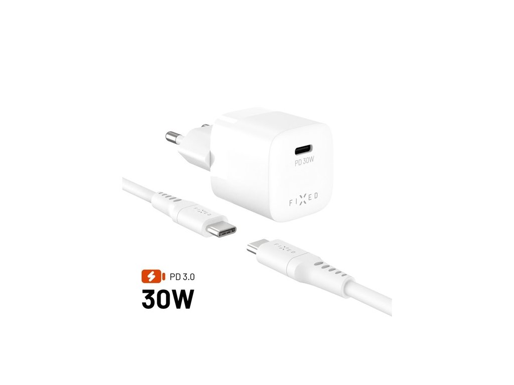 Set síťové GaN nabíječky FIXED Mini s USB-C výstupem a USB-C/USB-C kabelu, podpora PD, 1,2 metr, 30W, bílýDoplňkové parametry