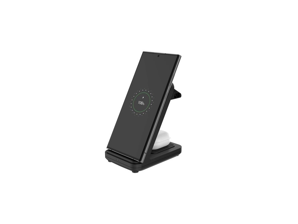Stojánek FIXED Powerstation Uni s bezdrátovým nabíjením až pro 2 zařízení, 15W+5W, černý