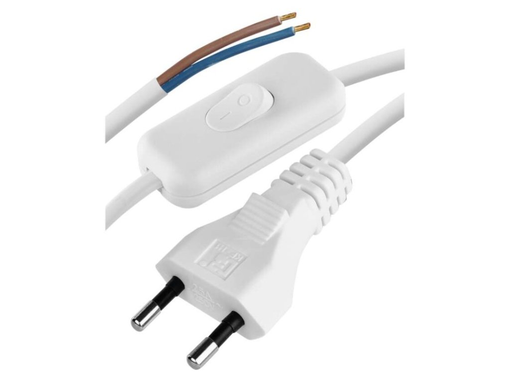 barva: bílá|délka: 2 m|prodejní obal: 1 ks, závěs|průřez vodiče: 2× 0,75 mm²|typ: KF-H1/S051E4|typ izolace: PVC|vodič: H03VVH2-F|vypínač: ano (50 cm od volného konce)Doplňkové parametry
