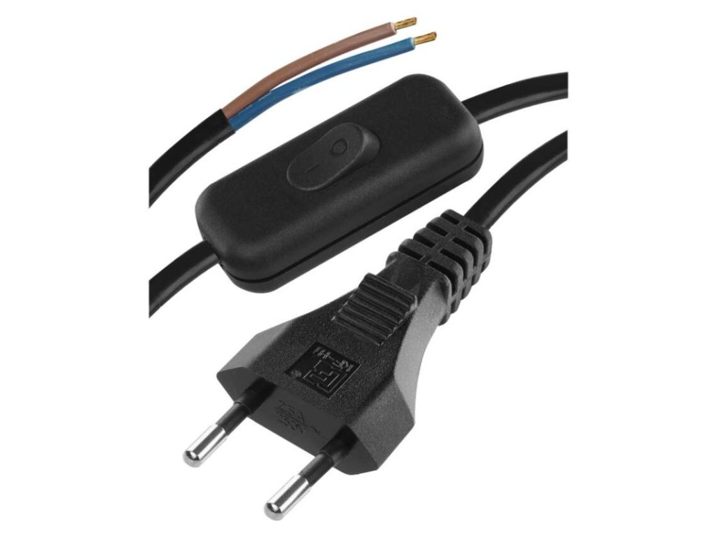 barva: černá|délka: 2 m|prodejní obal: 1 ks, závěs|průřez vodiče: 2× 0,75 mm²|typ: KF-H1/S051E4|typ izolace: PVC|vodič: H03VVH2-F|vypínač: ano (50 cm od volného konce)Doplňkové parametry