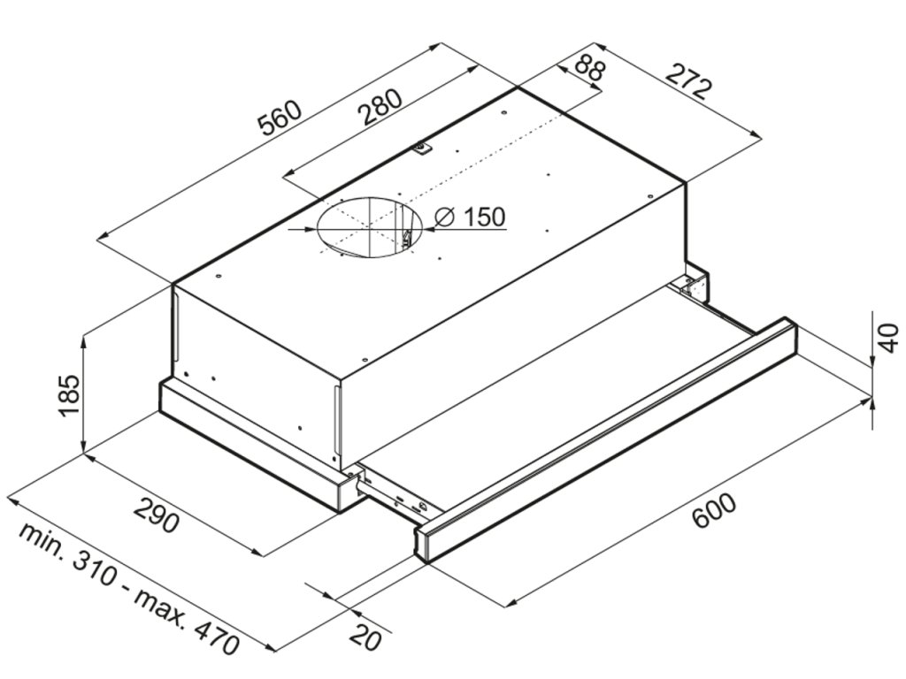 rychlosti, osvětlení 2x 3W LED GU10, kovové ALU filtr proti mastnotám, výkon 310 m3/hod, hlučnost při nejvyšším stupni výkonu 68- 72 dBA, horní odtah 150 mm, barva – nerez čelní lišta, možné používat pro recirkulaci , kód filtru FWN 130. 2ks"Doplňkové parametry