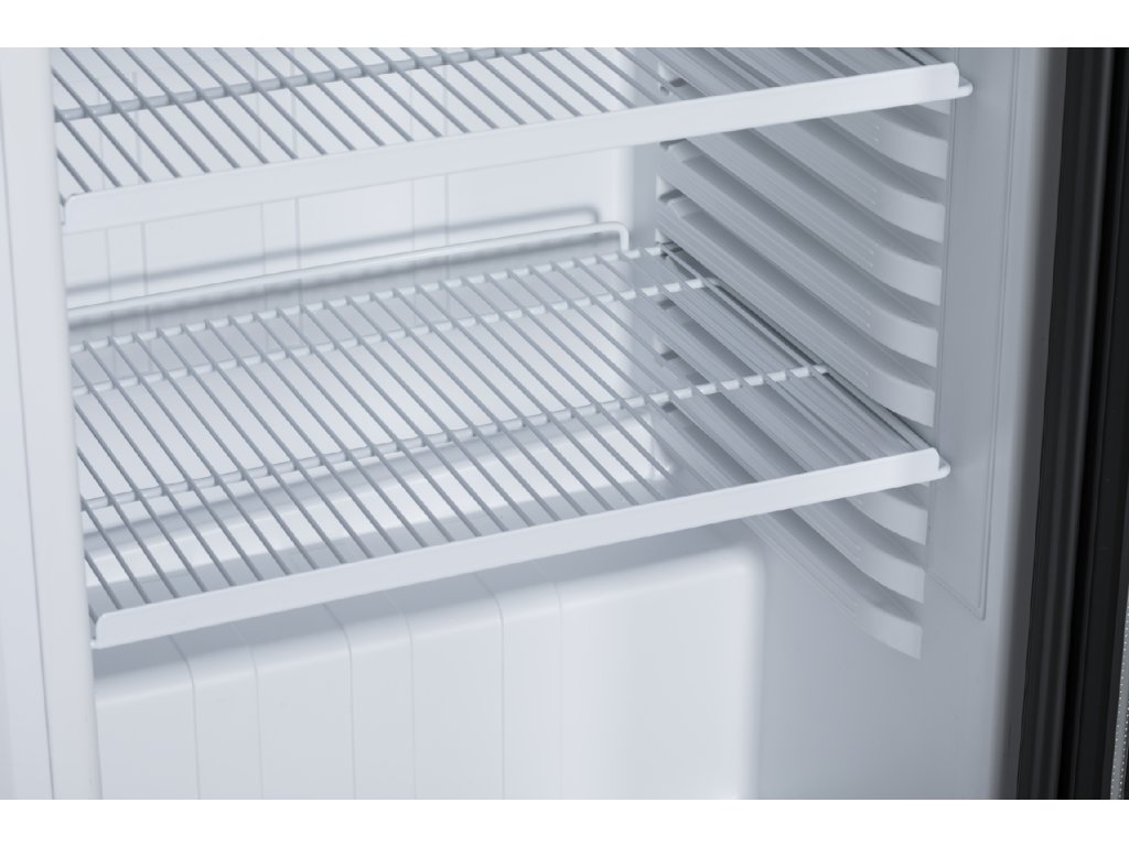 5x polohovatelné police, každá s nosností max. 35 kg; dvojité temperované sklo dveří; ventilované chlazení; chladí i při +32°C (vhodné i pro provozy s vyšší teplotou); nastavitelný termostat s rozsahem chlazení už od +1°C do +9°C; vnitřní LED osvětlení; horní prosvětlovací box s LED osvětlením;Doplňkové parametry