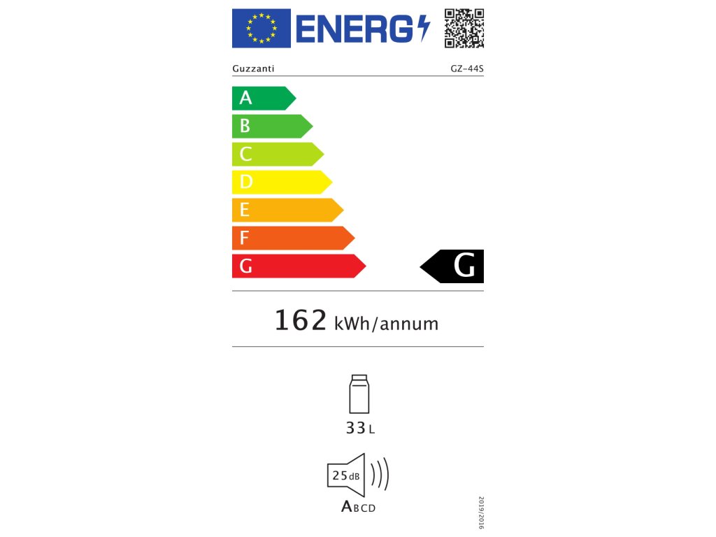kapacita 33l, termoelektrický chladicí systém (Heat pipe technology), bez kompresoru, bez CFC, spotřeba rok 162 kWh, spotřeba za 24 hodin 0,44 kWh, teplotní rozmezí 5-10°C při okolní teplotě 25°C, rozměry (v x š x h): 54,5 x 40,5 x 44,3 cmDoplňkové parametry