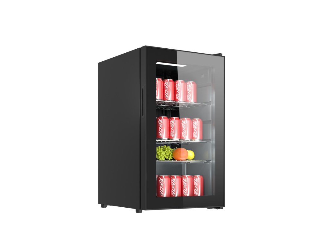 čistý objem 63 l 3x polohovatelné police s kompresorem a eko chladivem R 600a bez CFC nastavitelný termostat s rozsahem chlazení už od 3°C vnitřní LED osvětlení černé provedení a rámeček kolem dveří z temperovaného skla ideální pro hotely, penziony, kanceláře spotřeba 0,21 kWh/24Doplňkové parametry
