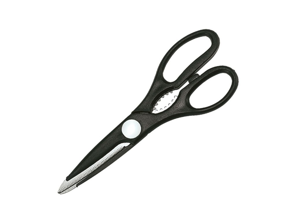 (BAL:1/12ks) K02 univerzální nůžky 215mm.Univerzální použití pro práci, kancelář, domácnost, lze použít i jako nůžky na drůbež. S louskáčkem ořechů. Vyrobeno z vysoce kvalitní nerezové oceli. Ergonomická rukojeť. Broušené hrany břitu. Materiál: nerez, plast. Barva: černá. Balení: na kartě se závěsem.Doplňkové parametry