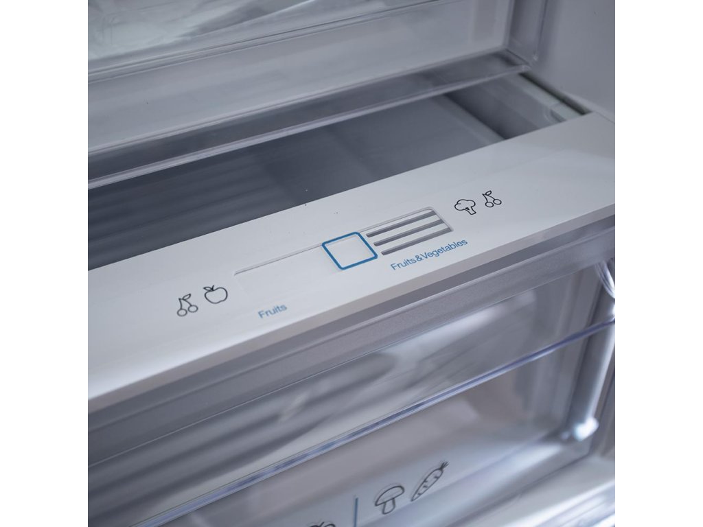 Kombinovaná chladnička s mrazákem Technologie No Frost Technologie Chill zone (nulová zóna) Čistý objem chladničky: 401 l Čistý objem mrazničky: 181 l Nastavitelné nožičky, držák na láhve, skleněné poličky Možnost změny otevírání dveří Mraznička: 3 zásuvky z průhledného plastu Mrazící kapacita: 4kg/24kg Roční spotřeba: 326 kWh Hlučnost: 41 dB (A) Energetická třída: E Barva: stříbrná Rozměry chladničky (ŠxHxV): 840x755x1860 mm Hmotnost chladničky: 114 kg