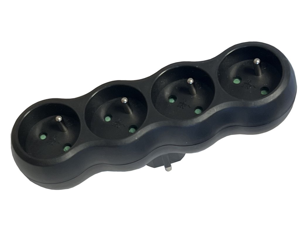 (BAL:1/50ks)rozbočka 4x kulatá v řadě250 V~/ 4 × 10 A. Max 2300W.Dětská ochrana-clonky. Barva: černá. Balení: sáček se závěsemDoplňkové parametry