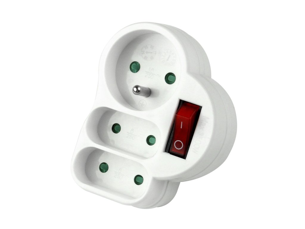 (BAL:1/100ks)1 x kulatá + 2 x plochá zásuvka s vypínačem250 V~/ 2x6A 1x10A. Max 3500W.Dětská ochrana-clonky.Balení: sáček se závěsemDoplňkové parametry