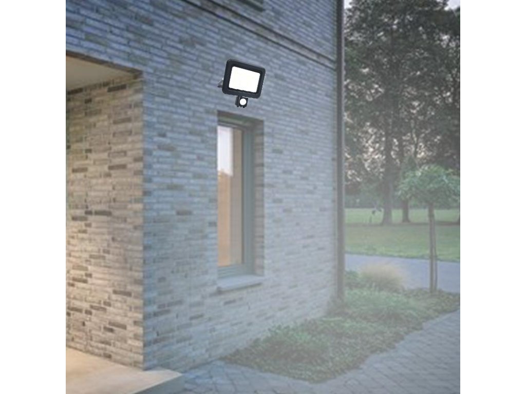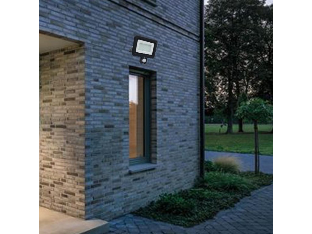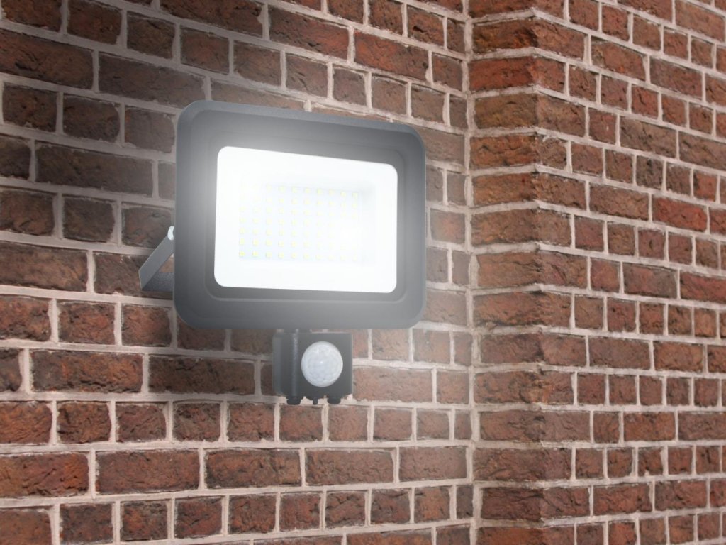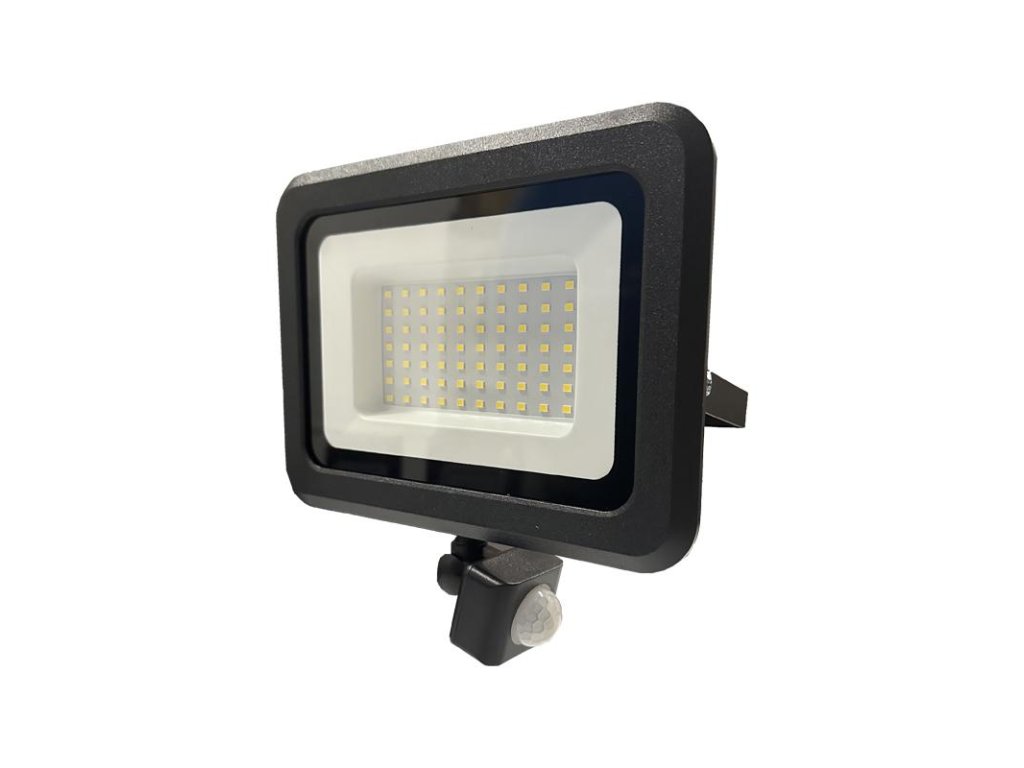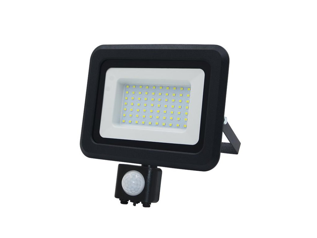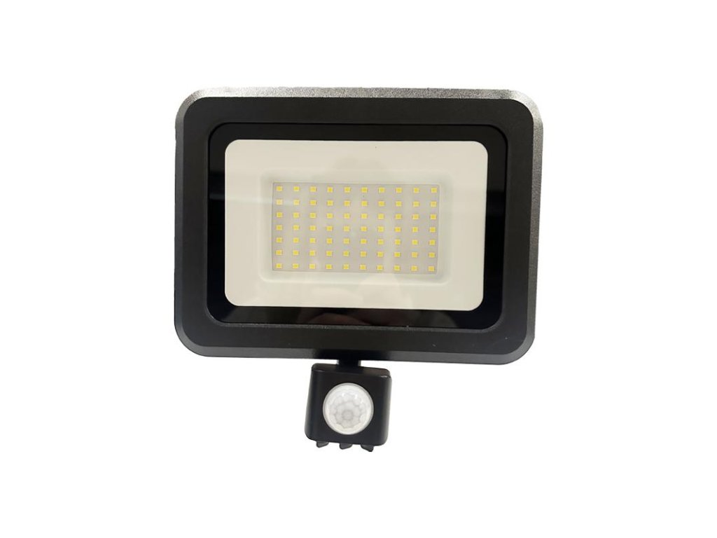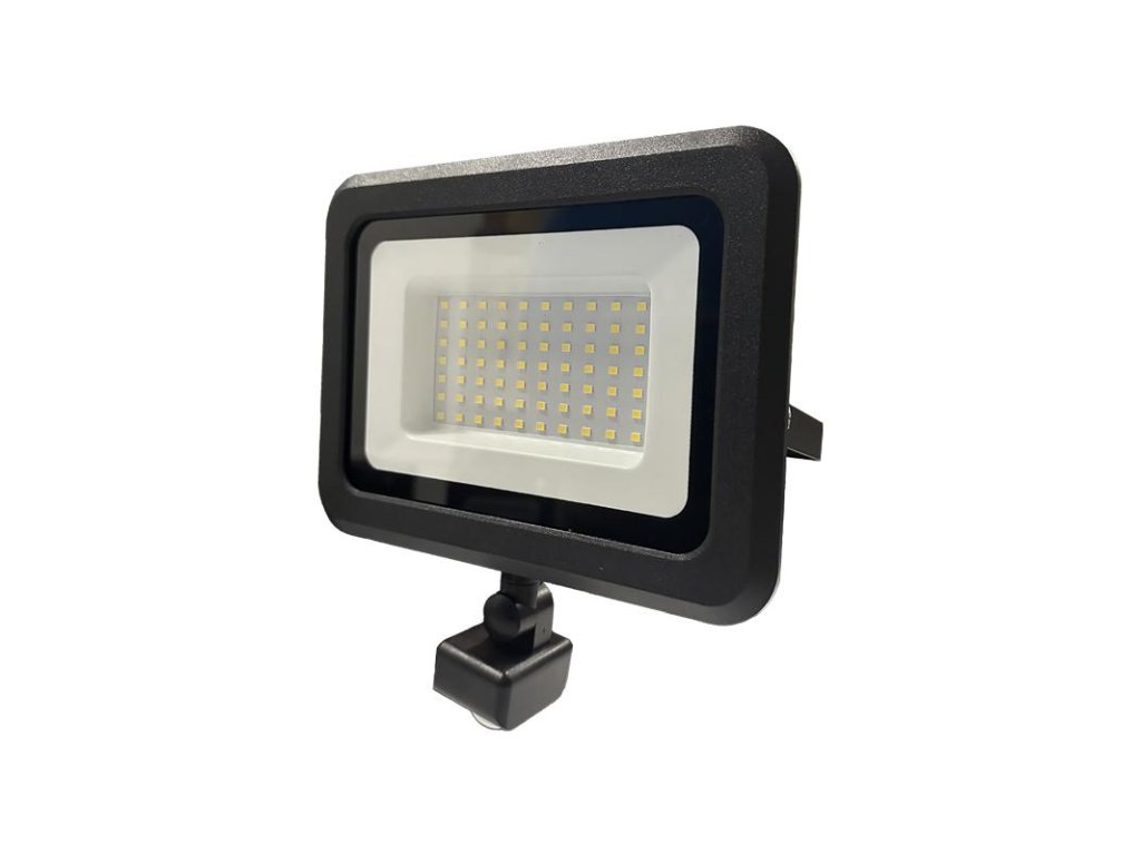 LED reflektor LF0024S v černé barvě, s výkonem 50W, svítivostí 4000Lm a barvou světla 4000K, disponuje držákem, senzorem a vysoce kvalitním LED čipem.