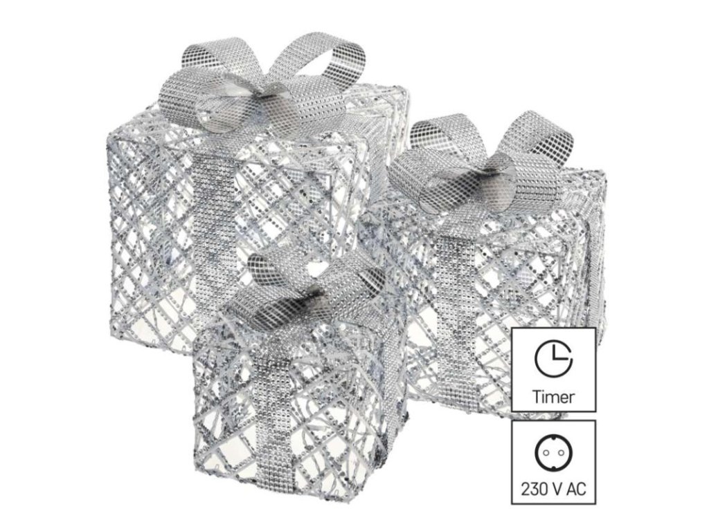 LED dárky, 3 velikosti, vnitřní, studená bílá, časovač