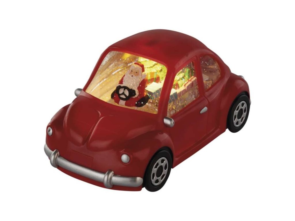 LED dekorace – autíčko se Santou, 10 cm, 3x AA, vnitřní, teplá bílá, časovač