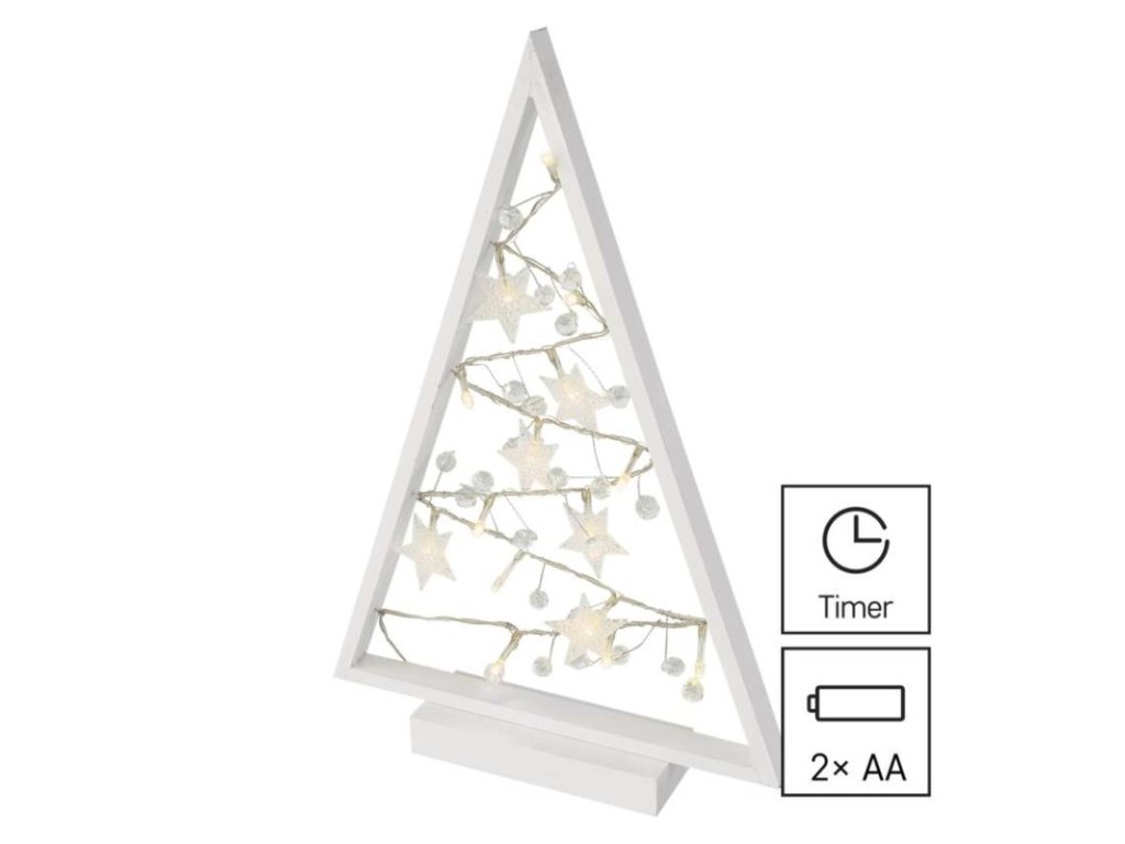 barva drátu: neuvádí se|barva světla: teplá bílá|časovač: ano|dálkový ovladač: ne|délka přívodu: neuvádí se|krytí: IP20|materiál: dřevo|počet LED: 15|použití: vnitřní|příkon: 0,45 W|prodejní obal: 1 ks, krabice|produkt: stromek|rozměr: 27 × 40 × 5 cm|typ napájení: baterie 2× AA (není součástí balení)|vstupní napětí: neuvádí se|výstupní napětí: 3 V DC|záruční doba: 2 roky|zdroj svícení: LED|životnost: 10 000 hodinDoplňkové parametry