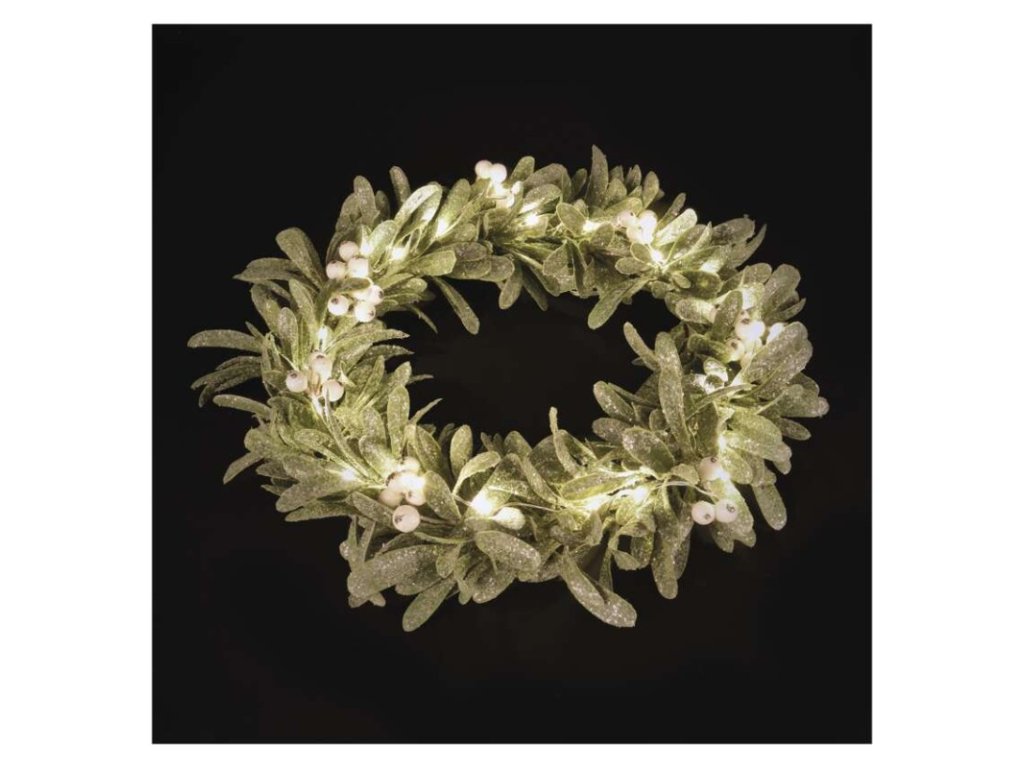 LED dekorace - věnec jmelí, 3x AA, teplá bílá, časovač