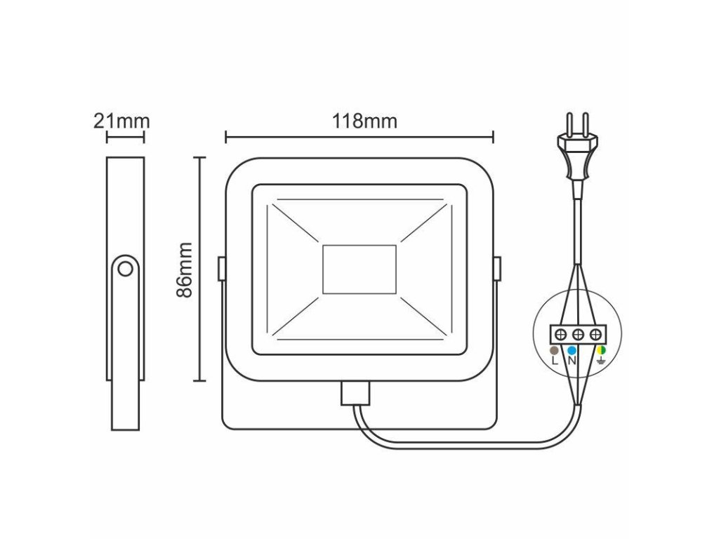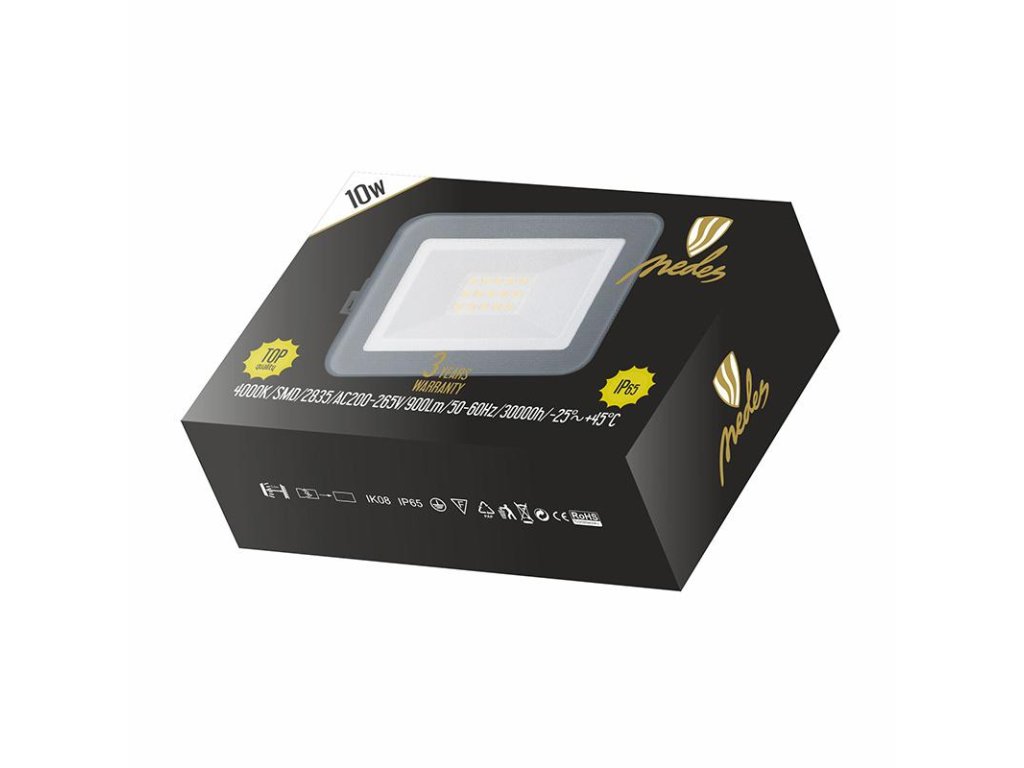 LED reflektor LF2221 v šedé barvě, s výkonem 10W, svítivostí 900Lm a barvou světla 4000K, disponuje držákem a vysoce kvalitním LED čipem.