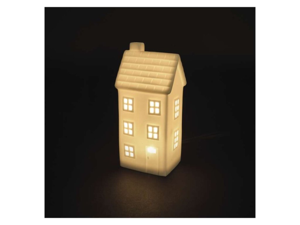 barva drátu: neuvádí se|barva světla: teplá bílá|časovač: ano|dálkový ovladač: ne|délka přívodu: neuvádí se|krytí: IP20|materiál: keramika|počet LED: 1|použití: vnitřní|příkon: 0,06 W|prodejní obal: 1 ks, krabice|produkt: domeček|rozměr: 77 × 60 × 163 mm|typ napájení: baterie 1× CR2032 (součástí balení)|vstupní napětí: neuvádí se|výstupní napětí: 3 V DC|záruční doba: 2 roky|zdroj svícení: LED|životnost: 10 000 hodinDoplňkové parametry