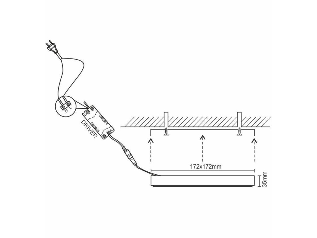 Panel je přizpůsoben pro montáž přímo na zeď nebo strop.