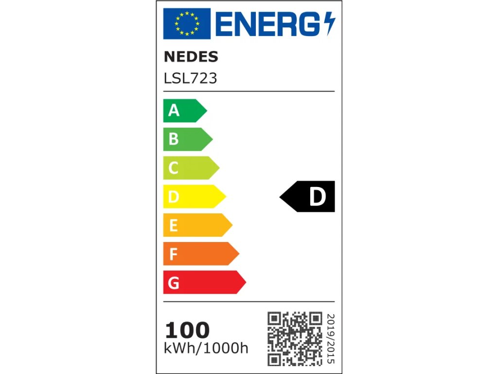 Asymetrické LED veřejné osvětlení LSL723 značky NEDES s neutrálním bílým světlem v výkonem 100W poskytuje efektivní osvětlení ulic, chodníků, silnic či parků.